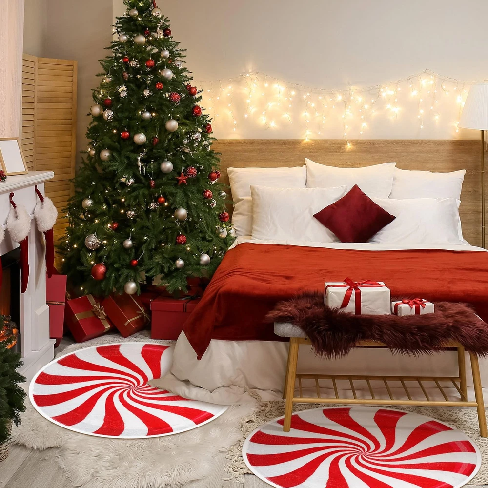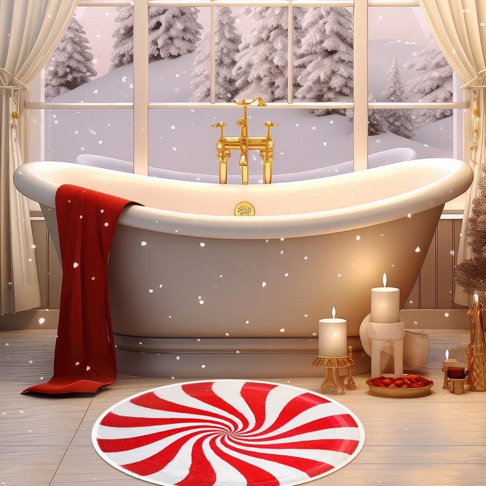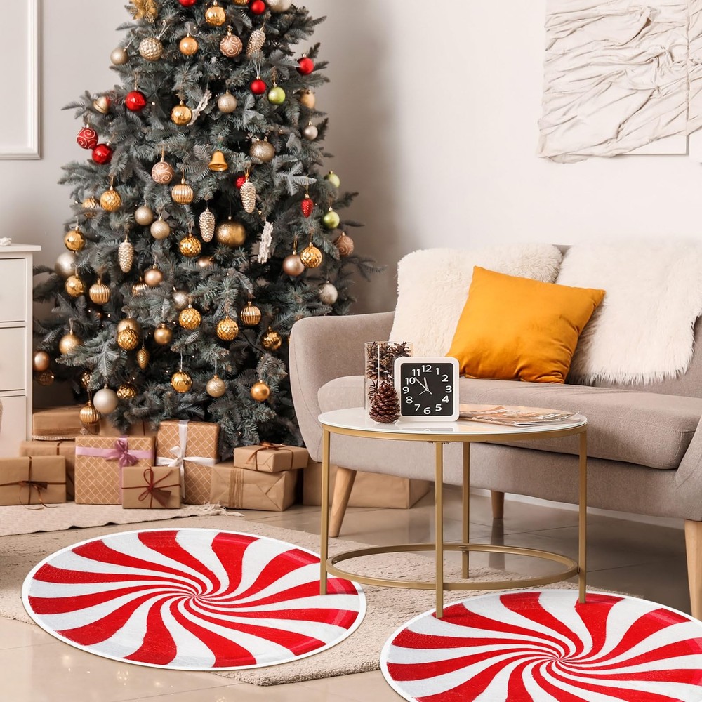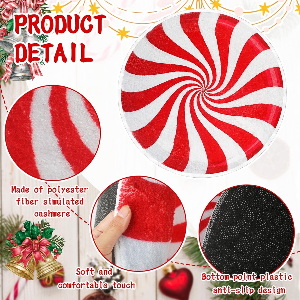Features: Practical and beautiful It can meet your needs as an absorbent bathroom mat, and can also be placed anywhere at home as a decoration. The exquisite shape and pattern design will add a festive color to your home. Easy to clean Clean your carpet regularly to maintain hygiene, before washing, pat off the dust, then soak it in cold water for a while, then rub it gently in the water with cleaning solution, do not scrub vigorously, rinse it with clean water and let it air dry naturally. Specifications: Material: imitation cashmere Size: about 23.62 inch/ 60 cm Package includes: 2 x Candy rug Notes: Do not use hot water for cleaning. Do not scrub vigorously. Manual measurement, please allow slight errors on size. The color may exist a slight difference due to different screen displays. Christmas Bathroom Rugs: the round candy area rug is in the shape of a candy, using the pattern of Christmas candy; It is beautifully designed and gives people a sweet feeling; Use this candy rug during this Christmas to make your home full of festive atmosphere Soft and Absorbent: Christmas soft candy bathroom rugs are made of imitation cashmere material, which is as smooth and soft as cashmere, with a flexible feel and good water absorption; Candy absorbent carpets can effectively prevent water stains from soaking the floor and keep your floor dry Anti Slip Backing: the back of the floor mat adopts a non slip design, which can be firmly fixed on the floor; When you walk from the shower room to the Christmas bathroom mat, it will not slide easily, ensuring your comfort and safety Packaging Contents: you will receive 2 pieces of winter Christmas bathroom mats; The diameter of each bathroom mat is about 23.62 inch/ 60 cm, the right size is enough for you to stand on without feeling cramped; Christmas candy rugs can meet your needs and is very suitable for home use Widely Applied: Christmas rug are suitable for many scenes; You can place them in the bathroom, kitchen, bathtub, laundry room, and restaurant to absorb water; They can also be placed in the living room, bedroom, dressing table, and bay window as a winter Christmas decoration; They are both practical and beautiful; You can also Think of it as an exquisite Christmas gift and share it with friends