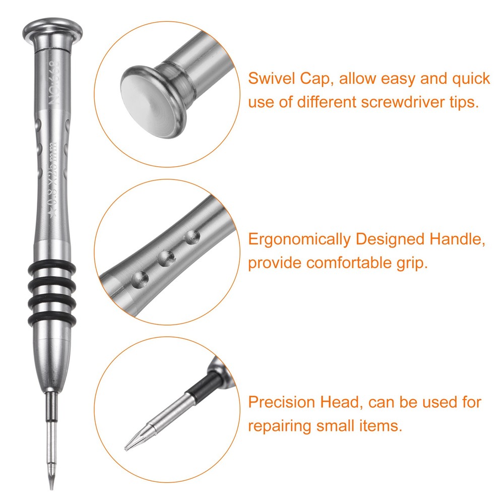 Document The mini magnet screwdriver is made of S2 material, a high-hardness material commonly used in hardware, good for electronic equipment.Ergonomic pen-shaped design aluminum alloy handle provides comfortable grip and excellent control.The tiny screwdriver has a swivel cap at the end of the handle to allow easy and quick use of different screwdriver tips.This small screw driver head features a magnetic design that holds small screws securely in place, preventing them from being lost or misplaced during repairs, allowing you to handle tiny components with precision and efficiency.This pen-style manual screwdriver is suitable for a variety of electronic devices and gadgets, such as repairing cell phones, watches, glasses, cameras, laptops, game consoles, keyboards and other electronic devices.Notice: To prevent damage to the screw and the drill, please do not attempt to turn screws with mismatched sizes. 2pcs 0.8mm Precision Magnetic Star Screwdriver with Aluminum Handle, Silver Tone The mini magnet screwdriver is made of S2 material, a high-hardness material commonly used in hardware, good for electronic equipment. Ergonomic pen-shaped design aluminum alloy handle provides comfortable grip and excellent control. The tiny screwdriver has a swivel cap at the end of the handle to allow easy and quick use of different screwdriver tips. This small screw driver head features a magnetic design that holds small screws securely in place, preventing them from being lost or misplaced during repairs, allowing you to handle tiny components with precision and efficiency. This pen-style manual screwdriver is suitable for a variety of electronic devices and gadgets, such as repairing cell phones, watches, glasses, cameras, laptops, game consoles, keyboards and other electronic devices. Notice: To prevent damage to the screw and the drill, please do not attempt to turn screws with mismatched sizes. Hot Item Payment 1.We accept eBay payment . 2.Payment must be received within 7 business days of auction closing. Shipping 1.We ship to your eBay or Paypal address. Please make sure your eBay and Paypal address is correct before you pay. 2.Items will be shipped within 1-3 business day when we received payment. 3.Delivery time depends on destination and other factors. Description Policy 2pcs 0.8mm Precision Magnetic Star Screwdriver with Aluminum Handle, Silver Tone The mini magnet screwdriver is made of S2 material, a high-hardness material commonly used in hardware, good for electronic equipment. Ergonomic pen-shaped design aluminum alloy handle provides comfortable grip and excellent control. The tiny screwdriver has a swivel cap at the end of the handle to allow easy and quick use of different screwdriver tips. This small screw driver head features a magnetic design that holds small screws securely in place, preventing them from being lost or misplaced during repairs, allowing you to handle tiny components with precision and efficiency. This pen-style manual screwdriver is suitable for a variety of electronic devices and gadgets, such as repairing cell phones, watches, glasses, cameras, laptops, game consoles, keyboards and other electronic devices. Notice: To prevent damage to the screw and the drill, please do not attempt to turn screws with mismatched sizes. Hot Item Payment 1.We accept eBay payment . 2.Payment must be received within 7 business days of auction closing. Shipping 1.We ship to your eBay or Paypal address. Please make sure your eBay and Paypal address is correct before you pay. 2.Items will be shipped within 1-3 business day when we received payment. 3.Delivery time depends on destination and other factors.