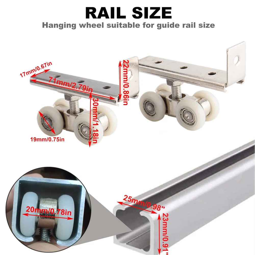 2pcs 4-Wheel Metal Sliding Track Wheel Set Hanger Ball Bearing Pulley Kit for...