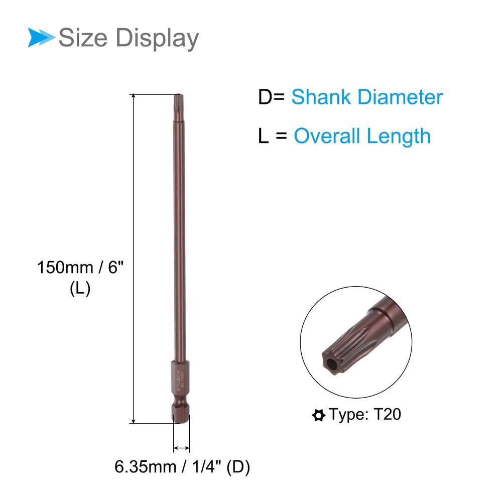 Document Attributes:*Size: T20*Shank Diameter: 6.35mm / 1/4"*Total Length: 150mm/6"* Shank Type: Hex ShankWhat Is Included:* 2 Pieces x Screwdriver BitApplications & Features:--- Suitable for industrial use and comes with a manual electric screwdriver, electric screwdriver, electric drill, and pneumatic drill.--- It is a commonly used tool in furniture installation, car repair, and other general tools. It is a commonly used tool in furniture installation, car repair, electronics factory, office installation, kitchen installation, and other projects.These screwdriver bits feature a magnetic design that allows them to easily attract and hold screws. This feature ensures convenient installation by securely holding the screw in place before and after fastening, preventing accidental drops or misalignment.The screwdriver bit is made of S2 steel, which is wear-resistant and impact-resistant, with a hardness of up to 58HRC.Useful Tips:Do not turn the screws with mismatched sizes to avoid damage to both the screw and the drill. 2pcs T20 Magnetic Torx Screwdriver Bit 6" Long Magnet 6 Point Tamper Proof Attributes: *Size: T20 *Shank Diameter: 6.35mm / 1/4" *Total Length: 150mm/6" * Shank Type: Hex Shank What Is Included: * 2 Pieces x Screwdriver Bit Applications & Features: --- Suitable for industrial use and comes with a manual electric screwdriver, electric screwdriver, electric drill, and pneumatic drill. --- It is a commonly used tool in furniture installation, car repair, and other general tools. It is a commonly used tool in furniture installation, car repair, electronics factory, office installation, kitchen installation, and other projects.These screwdriver bits feature a magnetic design that allows them to easily attract and hold screws. This feature ensures convenient installation by securely holding the screw in place before and after fastening, preventing accidental drops or misalignment. The screwdriver bit is made of S2 steel, which is wear-resistant and impact-resistant, with a hardness of up to 58HRC. Useful Tips: Do not turn the screws with mismatched sizes to avoid damage to both the screw and the drill. Hot Item Payment 1.We accept eBay payment . 2.Payment must be received within 7 business days of auction closing. Shipping 1.We ship to your eBay or Paypal address. Please make sure your eBay and Paypal address is correct before you pay. 2.Items will be shipped within 1-3 business day when we received payment. 3.Delivery time depends on destination and other factors. Description Policy 2pcs T20 Magnetic Torx Screwdriver Bit 6" Long Magnet 6 Point Tamper Proof Attributes: *Size: T20 *Shank Diameter: 6.35mm / 1/4" *Total Length: 150mm/6" * Shank Type: Hex Shank What Is Included: * 2 Pieces x Screwdriver Bit Applications & Features: --- Suitable for industrial use and comes with a manual electric screwdriver, electric screwdriver, electric drill, and pneumatic drill. --- It is a commonly used tool in furniture installation, car repair, and other general tools. It is a commonly used tool in furniture installation, car repair, electronics factory, office installation, kitchen installation, and other projects.These screwdriver bits feature a magnetic design that allows them to easily attract and hold screws. This feature ensures convenient installation by securely holding the screw in place before and after fastening, preventing accidental drops or misalignment. The screwdriver bit is made of S2 steel, which is wear-resistant and impact-resistant, with a hardness of up to 58HRC. Useful Tips: Do not turn the screws with mismatched sizes to avoid damage to both the screw and the drill. Hot Item Payment 1.We accept eBay payment . 2.Payment must be received within 7 business days of auction closing. Shipping 1.We ship to your eBay or Paypal address. Please make sure your eBay and Paypal address is correct before you pay. 2.Items will be shipped within 1-3 business day when we received payment. 3.Delivery time depends on destination and other factors.