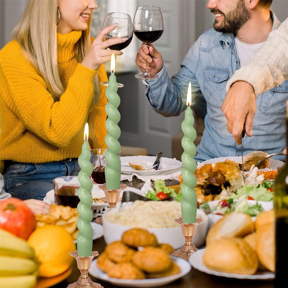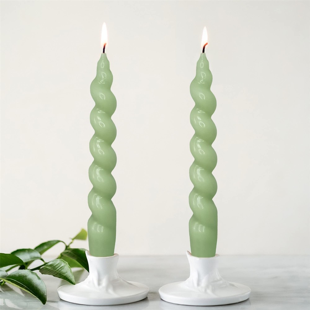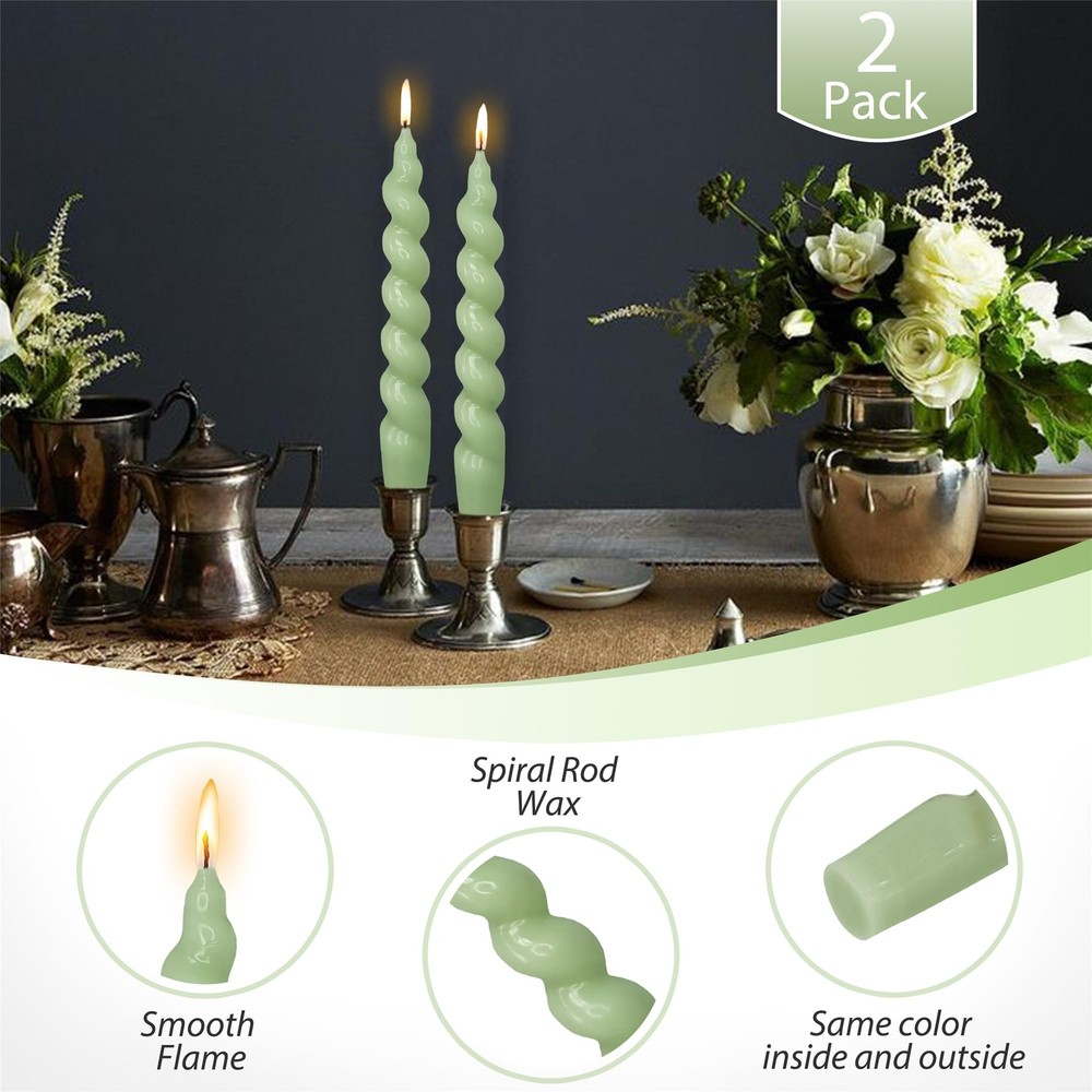 2pcs 7.5 Inch Green Spiral Taper Candles for Wedding Holiday Decor