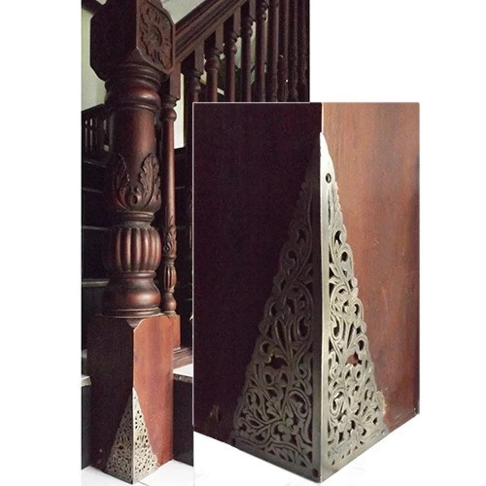 ITEM DESCRIPTION : 8.46" SET of Solid Brass Decorative Corner Plate Protector / Brass corner protector / Geometris Cabinet Decorative Angle Corner Guards > Total item on sale offer : 2pcs (include screws / bolts for Corner Decorative). > Condition : NEW / UNUSED. > Material : SOLID BRASS. > Finish : Antique Brass > Measurement / Size : Height : 8.46" inch (21.5cm) x Width : 3.54" inch (9cm) x Plate Thick : 3mm / pc