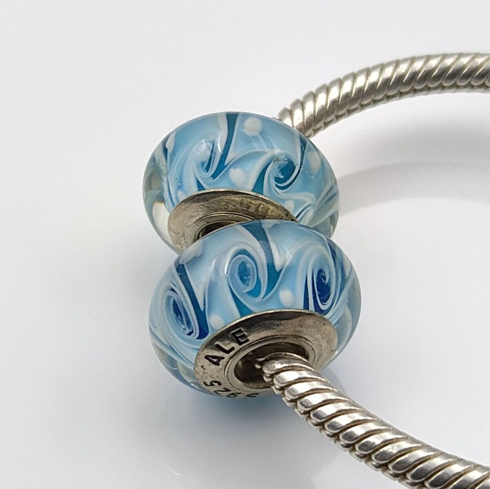 The delicate blue swirl pattern beautifully contrasts with the shimmering silver accents, creating a timeless and versatile piece that complements any style. Crafted with care, these charm beads are the perfect way to personalize your accessories or make a thoughtful gift for the special woman in your life. Elevate her style with these eye-catching Murano glass beads—ideal for birthdays, anniversaries, or any special occasion. With US stock availability, you can enjoy fast delivery and hassle-free service. 100% New and high quality Material: S925 Sterling silver Note: Bracelet and Box NOT INCLUDED, they are just a display. FITS PANDORA, CHAMILIA, TROLLBEADS, AND EUROPEAN STYLE CHARM BRACELETS Help us serve you better—leave your feedback today and be a part of our ongoing improvement!
