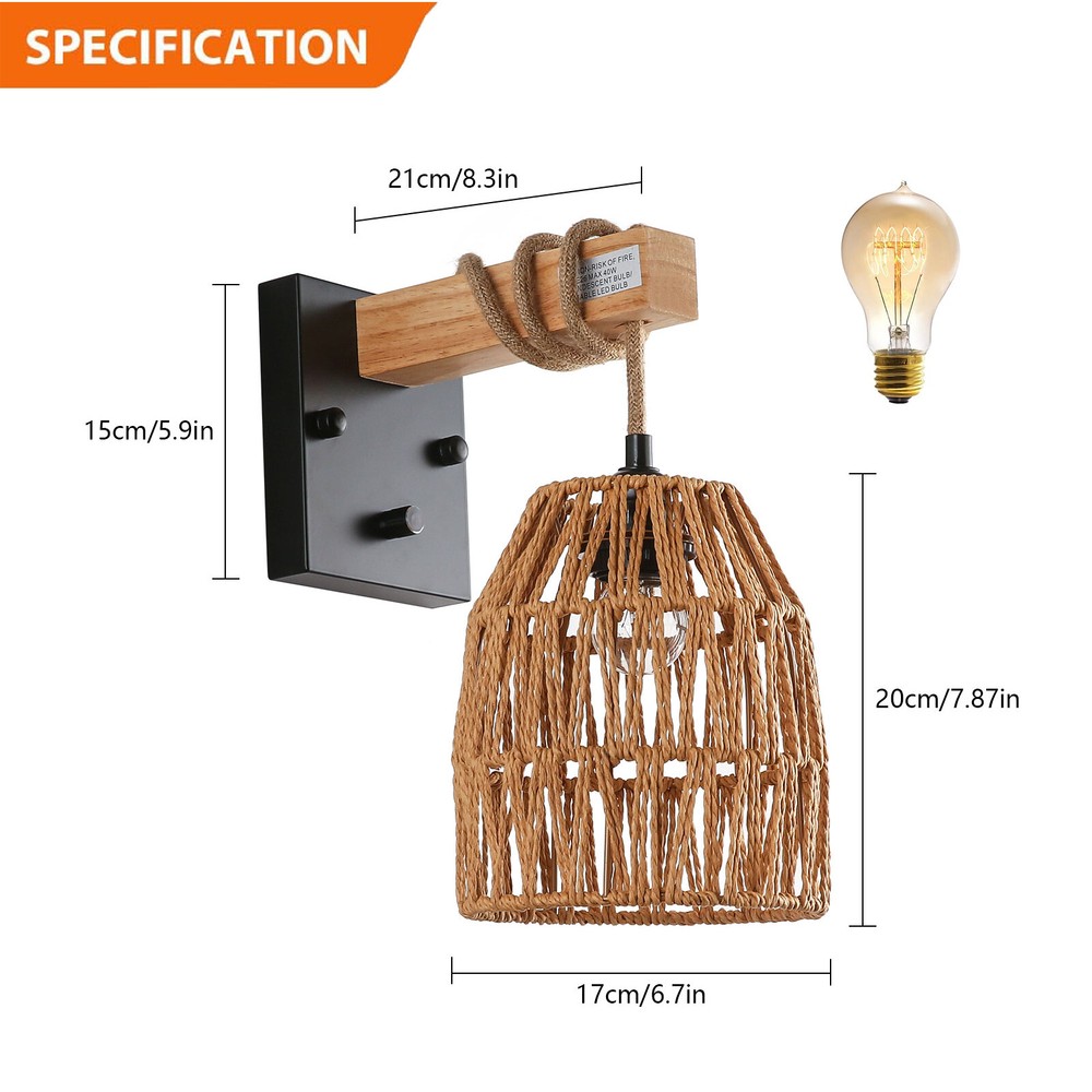 Application: With a lighting area of 32.29ft², this product is suitable for the entryway, hallway, living room, dining room, bedside reading, bedroom, kitchen island, café, bar, or restaurant, etc. Details: + Sturdy Base: The large base(5.91*5.91in) increases the stress area, and can make it fixed firm and not easy to fall. + Standard Lamp Holder: This product is suitable for various E26 screw-in bulbs, easy for you to buy and replace. Package Included: 2* Wall Lamps Other Accessories for Assembly 2pcs Boho Wood Color Farmhouse Hallway Wall Lamp Wall Sconce Loft Light Fixture 2pcs Boho Wood Color Farmhouse Hallway Wall Lamp Wall Sconce Loft Light Fixture Description A Good Wall Lamp Can Add Atmosphere and Charm to a Room. Our Wall Lamps Are Made of High-quality Materials to Ensure Long-term Use. Its Romantic Light Brings You Warm Company at Night, Allowing You to Enjoy a More Comfortable Home Life. Whether for Decoration or Lighting, This Wall Lamp Is Your Ideal Choice. Key Features Made to Last: This Product Is Made of High-quality Woven Paper, Oak, Twine, and Hardware by Polishing and Painting Processes, Corrosion and Abrasion-resistant, Can Be Used for a Long Time Without Frequent Replacement. Exquisite Appearance: Designed in a Bohemian Style, This Wall Lamp's Twine Braided Lamp Shape and Wood-colored Appearance Allow It to Match Most Home Decor, Creating a Pleasing Visual Experience. Powerful Lighting: You Can Install up to a 40w Light Source for the E26 Lamp Base to Provide Powerful Lighting (32.29ft²). the Hollowed-out Lampshade Not Only Decorates the Shape of the Lamp but Also Won't Block the Light. Elaborate Design: by Purchasing Dimmers and Dimming Bulbs (Both Not Included), You Can Also Adjust the Light to Create Different Lighting Effects. Thoughtful Companion: When You Come Home from a Hard Day's Work, Please Turn on This Wall Lamp. Its Bright and Soft Light Can Fill Your Heart with Warmth and Touch, Liven up Monotonous Life and Rooms, and Enhance Your Sense of Happiness in Life. Easy to Install: with Complete Accessories and a Simple Structure, You Can Easily Complete the Installation and Have Fun with the Installation Process. Adjustable Height: You Can Adjust the Length of the Suspension Cord to Your Preference Within a Range of About 1.97 Inches to Fit Different Spaces. Effortless Cleaning: the Smooth Surface and Simple Structure Allow You to Clean It with a Dry Cloth. Ideal Gift: Because of Its Beautiful Appearance and Good Lighting Effect, You Can Give It to Your Friends or Family As a Nice Gift for a Birthday, Housewarming, Halloween, Thanksgiving, or Christmas. Good Customer Service: We Aim to Provide Quality Products and Services. If You Have Problems, Please Feel Free to Contact Us. We Will Reply and Solve the Problem for You As Soon As Possible. Details Sturdy Base: the Large Base(5.91*5.91in) Increases the Stress Area, and Can Make It Fixed Firm and Not Easy to Fall. Standard Lamp Holder: This Product Is Suitable for Various E26 Screw-in Bulbs, Easy for You to Buy and Replace. Application With a Lighting Area of 32.29ft², This Product Is Suitable for the Entryway, Hallway, Living Room, Dining Room, Bedside Reading, Bedroom, Kitchen Island, Café, bar, or Restaurant, Etc. Specification Material: Woven Paper, Oak, Twine, Hardware Process: Polishing, Painting Color: Wood Color Style: Boho Assembly Required: Yes Efficiency: E Mounting Type: Wall Mount Indoor/Outdoor Usage: Indoor Light Direction: Downlight Switch Type: Wall Control(Not Included) Number of Pieces: 2 Voltage: 110v Each Light Source: 1* E26 Bulb ( Not Included) Max. Bulb Power: 40w Applicable Area: 3m²/32.29ft² Hanger Line Length Adjustment: 5cm/1.97in Base Size: 15*15*21cm/5.91*5.91*8.27in Lampshade Size(D*H): 17*20cm/6.69*7.87in Package Size: 44*25*16cm/17.32*9.84*6.3in Gross Weight: 2.5kg/5.51lbs Net Weight: 2kg/4.41lbs Package Included 2* Wall Lamps Other Accessories for Assembly Notes Please Check the Product Size Before Ordering to Make Sure It Fits Your Home. Please Note That This Product Cannot Be Installed on Sloping Ceilings. Please Note That the Bulbs Are Not Included and You Will Need to Purchase 1 E26 Bulb Yourself. Please Wear Electric Insulation Gloves(Not Included) and Avoid Scratching the Surface of the Lamp Plate and the Electric Wire When Installing. Please Make Sure That the Power Supply Has Been Cut off Before Installation, and Conduct a Power Test Before Installation. Please Install It by a Licensed Electrician If Necessary. Please Use the Lamp Within the Applicable Voltage Range and Clean Lamps Regularly. Please Cut off the Power Supply When You Clean the Light or Replace Light Bulbs. Please Do Not Install the Light Next to Hot Objects Such As a Fireplace, Exhaust Pipe, or in Unstable Places to Avoid Damage. Please Allow the Slight Color Difference Caused by the Shooting Light and 1-3cm Error Due to Manual Measurement, and Make Sure You Do Not Mind Before Ordering. Payment Delivery details Terms of sales About us Contact us Payment We accept ebay payment 。 Fees such as import duties, taxes are not included in the item price or shipping costs. These charges are the buyer's responsibility. Delivery details Shipping: 2-9 working days to: USA Terms of sales We maintain high standards of excellence and strive for hundred percent customer satisfaction. Feedback is very important to us. We hope that you contact us immediately before you give neutral or negative feedback, so that we can address your concerns. It is impossible to address issues if we do not know about them! About us Your satis faction is our ultimate goal. We work hard to earn your trust and future business. Our certified technicians have tested each item before shipping. The unit comes with 1 year limited warranty on all manufacturing defects. a) If you receive a defective item, you may return it or ask for a discount. Please contact us within 14 days after you receive the package. b) What you returned must be int