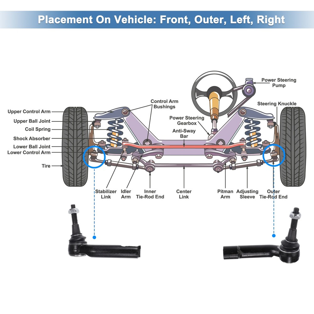 2pc External Front Tire End Connections for Dodge Dakota