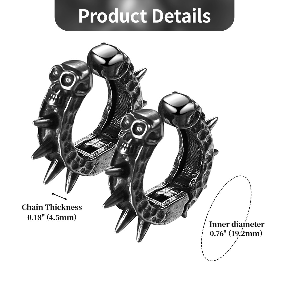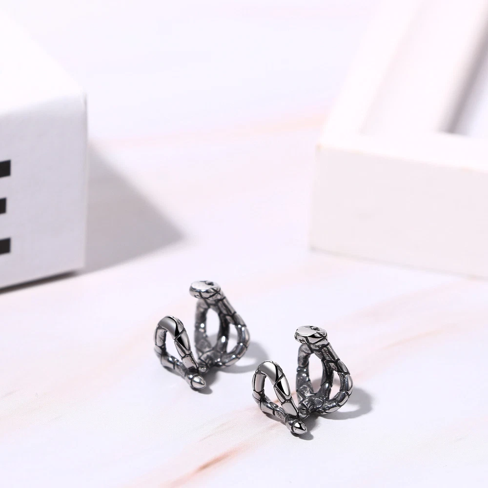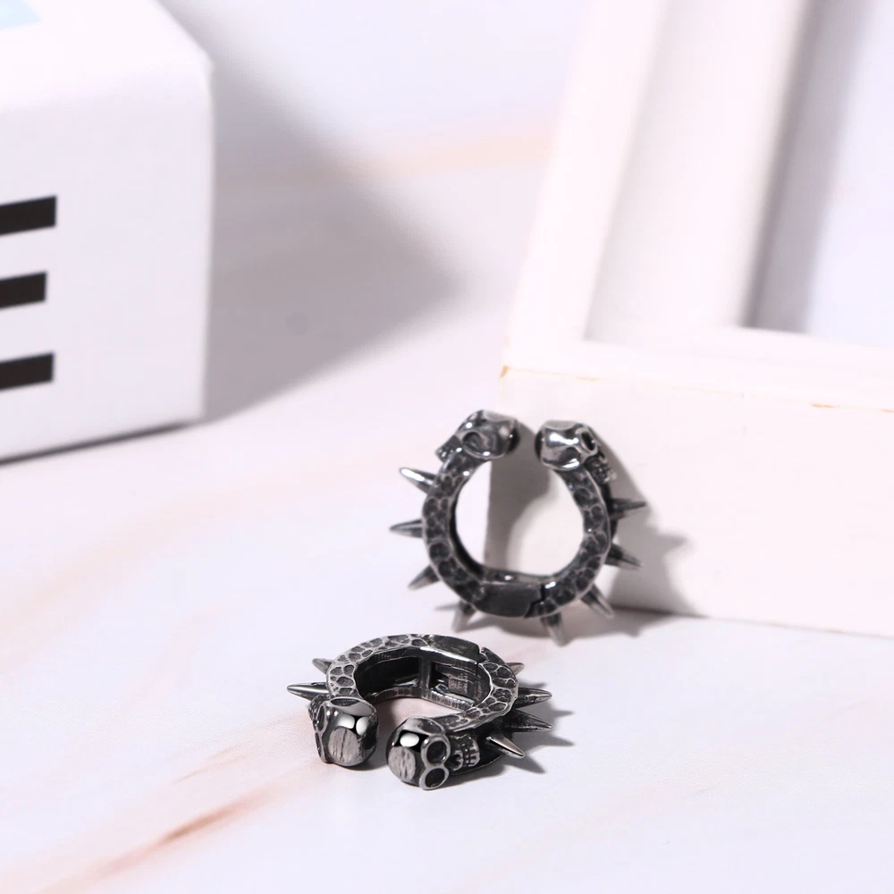2pcs Gothic Skull Skeleton Punk Cartilage Clip-On Non-Piercing Earrings