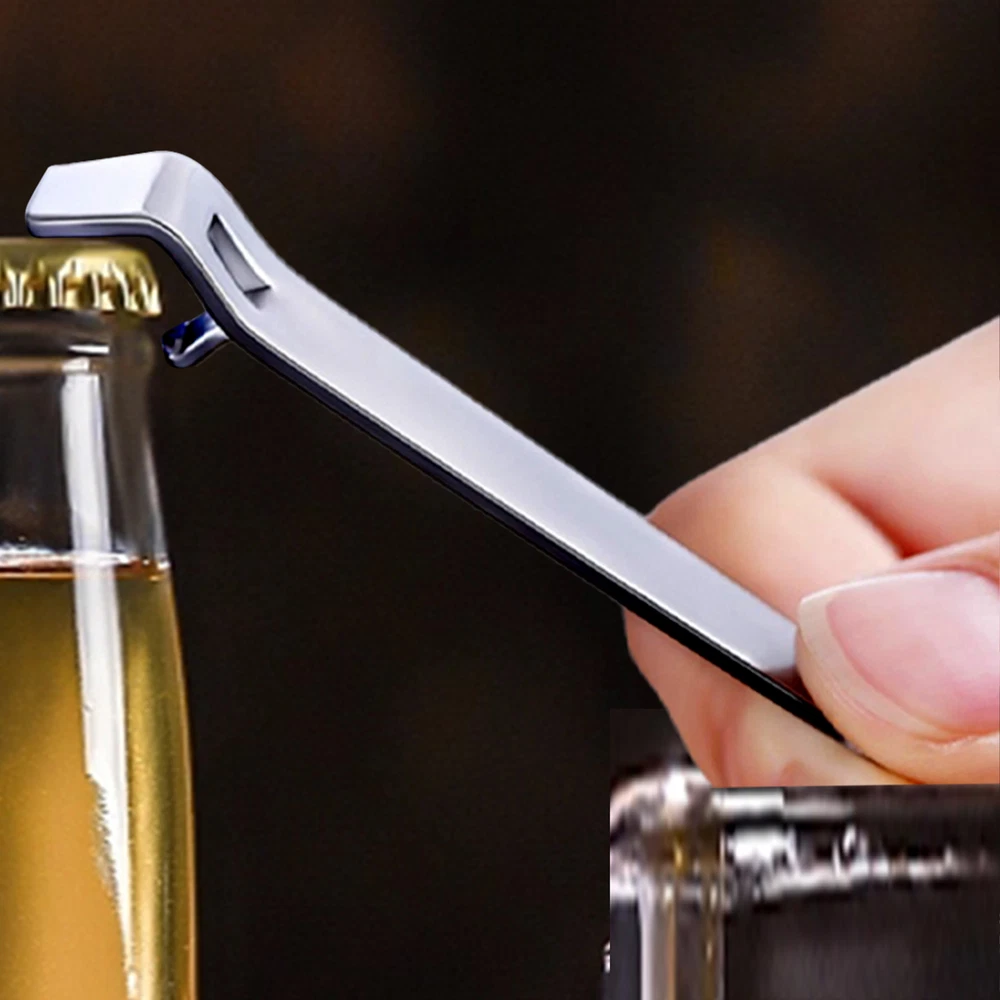Bullet Points: Carefully Polished: With its carefully polished edges and comfortable grip, our stainless steel can opener ensures easy usage. Every corner is rounded to provide more peace of mind and eliminate any discomfort, giving you a comfortable and effortless open every time Convenient Bottle Opening: Allow our stainless steel can opener to bring you joy by avoiding the use of nails when opening bottle lids. Its nail-friendly design lets you quickly and conveniently enjoy opening happiness in any situation Convenient Accessibility: With a convenient keychain ring and a tail hole, this stainless steel can opener provides easy and portable access to a must-have kitchen tool, making it a must-have accessory for camping, travel, or daily use Not Easy to Rust: Crafted from enendurable stainless steel material, this can opener features outstanding strength, wear-resistant and rust-prevention for a sturdy tool that lasts. Enjoy effortless can opening with this enenendurable kitchen must-have that never deforms Wide Range of Uses: Empower your kitchen with this stainless steel can opener that effortlessly opens widely used containers including oral liquid bottles, jars, clamshell, and canned drinks for streamlined cooking and preparation Open your beer bottles with ease and care using our Oral Liquid Bottle Opener. Carefully polished and nail-friendly, it's easy to carry and not easy to rust. Specification: Product name: Oral Liquid Bottle Opener Weight: about 16g Product size: about 7x1.9cm/2.76x0.75 inches (see size drawing for details) Material: Stainless steel Packing List: 2pcs * Small Vial Opener Note: Due to different lighting and screen settings, the item color may be slightly different from the picture. Due to different manual measurements, please allow a 1-2cm difference in size.