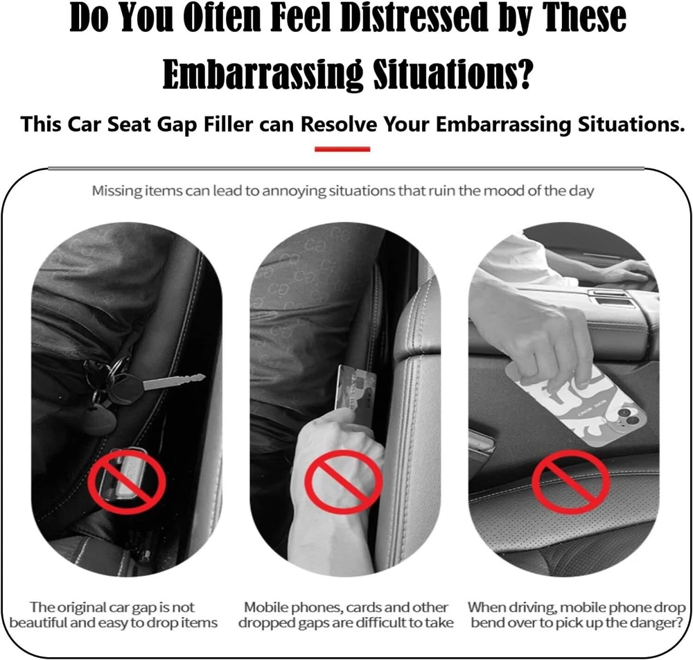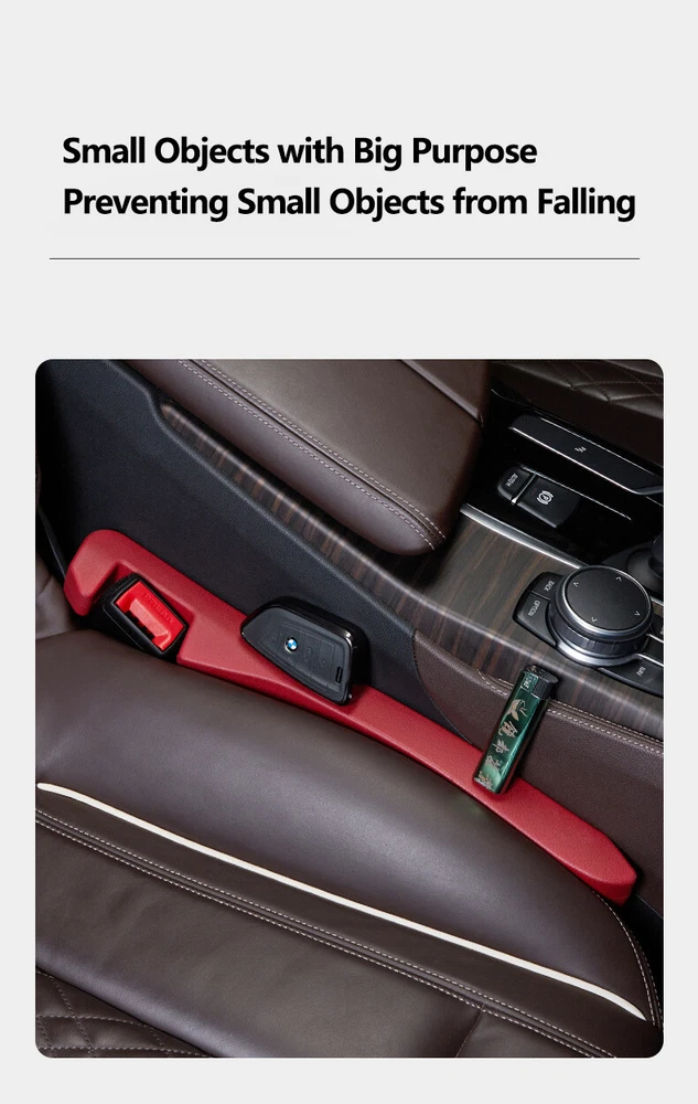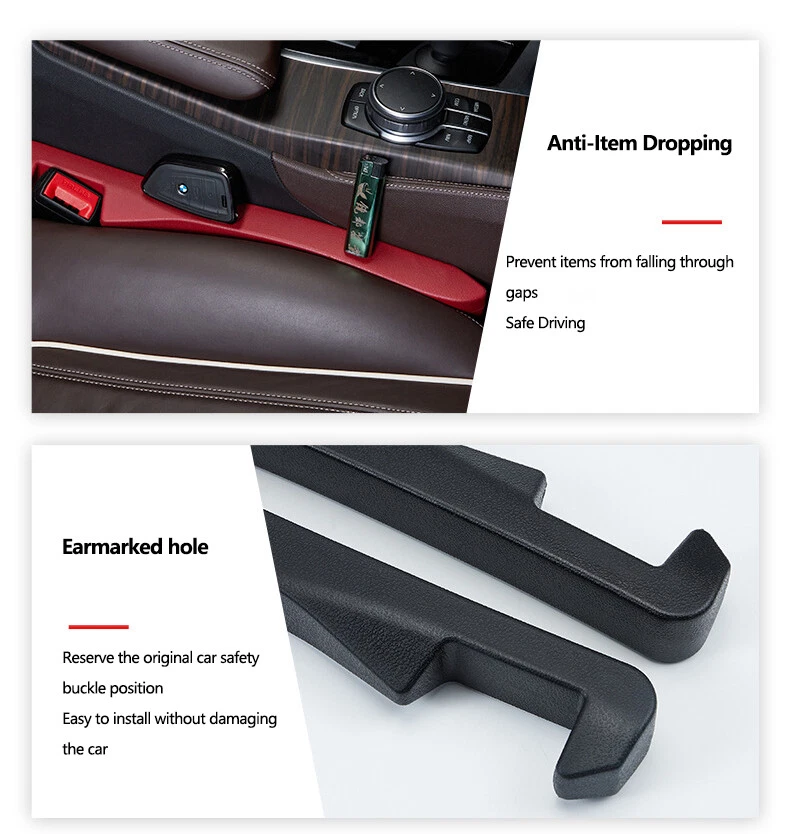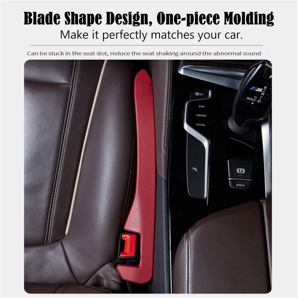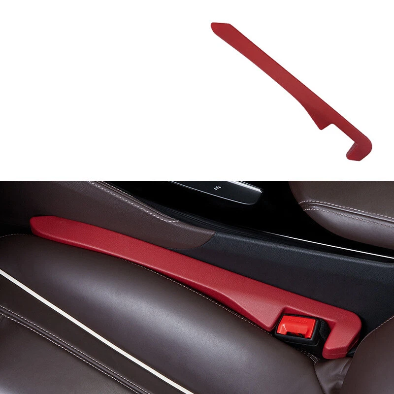 Car Seat Gap Filler 2 Pack, Universal Organizer for Car SUV Truck to Fill The Space Between Seat and Console, Car Seat Blocker and Catcher Prevent Things from Dropping, Easy to Install Specification: Material :PU Special Feature Portable Color :Red Package included:2pcs Feature: 1.【Fill the Car Seat Gap】This car seat spacer seat gap filler pad is designed to block the gap between your car, suv or truck seat and center console, preventing crumbs and small items like phone, glasses, key, card, and coin from falling into the void. 2.【Textured PU Leather Material】Leather upholstery, with a clear and textured surface, adds a different flair to a monotonous car interior. You don't have to worry about it getting dirty, just need a wet towel to clean it up. 3.【Reserved Space for Belt Buckle】Reserve space for the seat belt buckle, allowing the seat to move dynamically back and forth, without affecting the normal use of the seat belt buckle. At the same time, it can reduce the abnormal noise caused by the shaking friction of the left and right seats. 4.【Practical Sword-shaped Design】Slight curve can help the filler match the edge of the seat. It fills the gaps well and stop things into the gaps for goods. No longer lose your phone or anything else down in that abyss between the seat and center console. 5.【Universal for All Types of Vehicles】This car between seat blocker or catcher is suitable for various types of vehicles like cars, trucks, SUVs where the gap between the car seat and the center console is between 2cm and 6cm.