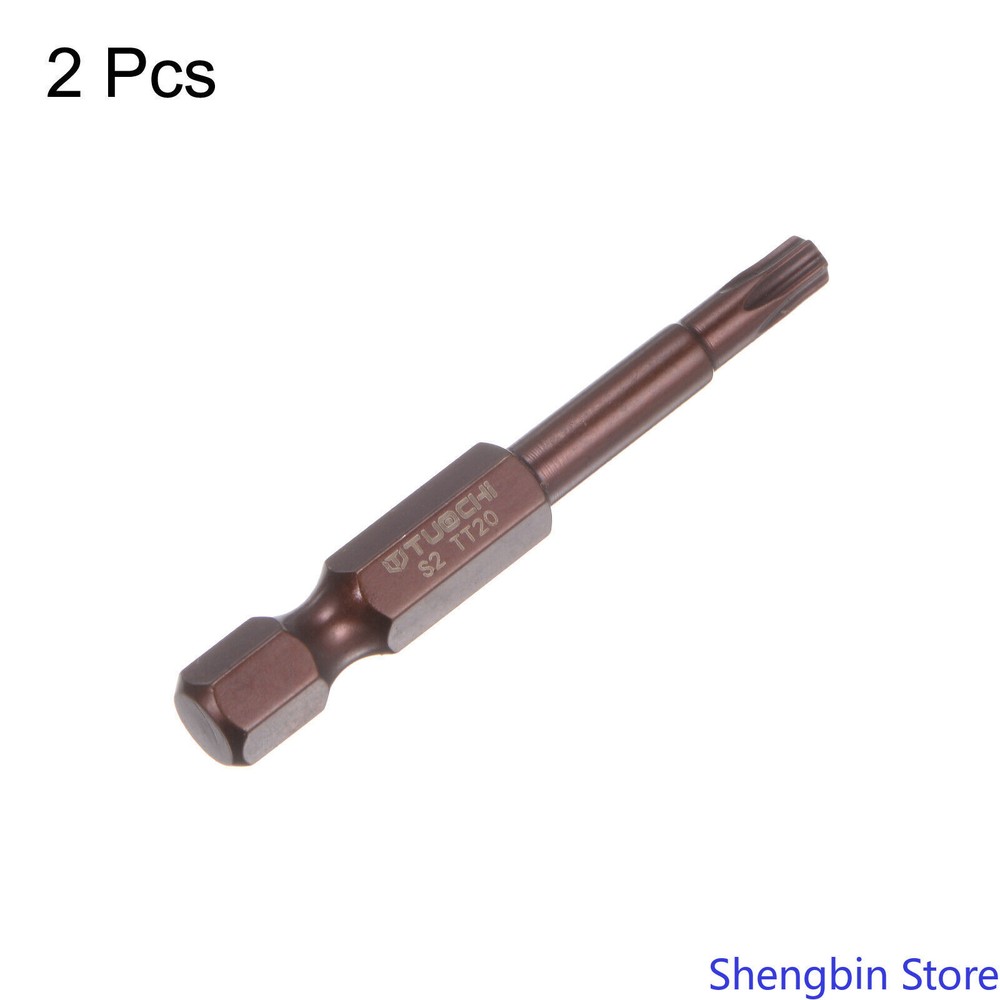 2pcs T20 Magnetic Security Torx Screwdriver Bit 1/4" Hex Shank 2" Length, Red 1. An excellent replacement for lost, bent or broken Torx tamper-resistant screwdriver bits. 2. Made of S2 alloy steel (heat-treated to HRC60°), which is a high-hardness material commonly used in hardware. Copper paint finish prevents rust and corrosion. 3. The magnetic tip can easily hold the screw when in use. 4. Exquisite workmanship, each edge can accurately lock the screws without damaging the screws and the screwdriver bit. The hole in the center of each bit is tamper-proof. 5. Widely used in DIY hand-making, automotive, household appliances, precision instruments and most general repairs. 6. Can be used for electric screwdrivers, manual screwdrivers, electric drills, air drills, etc. 7. Notice: Do not turn the screws with mismatched size to avoid damage to both the screw and the drill.