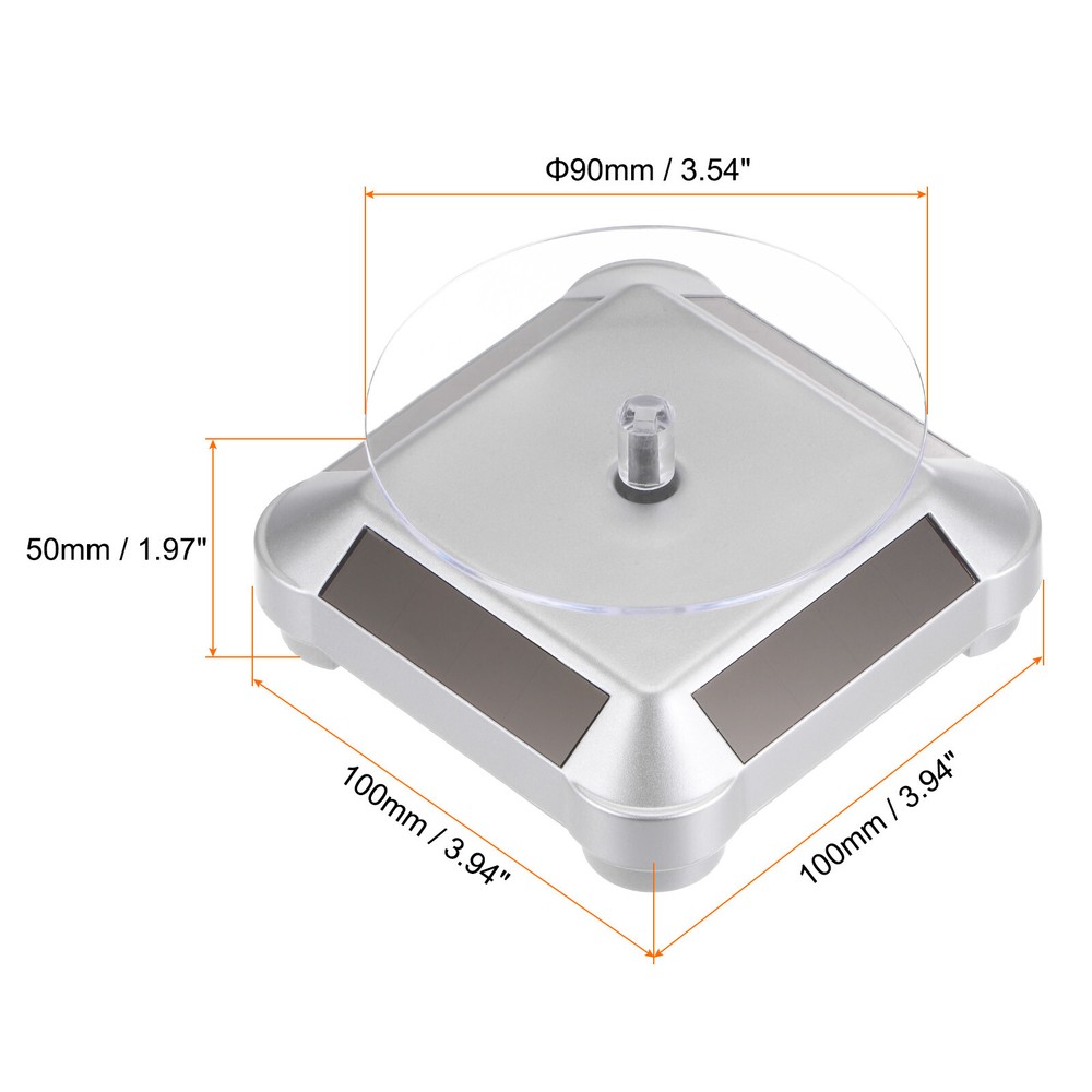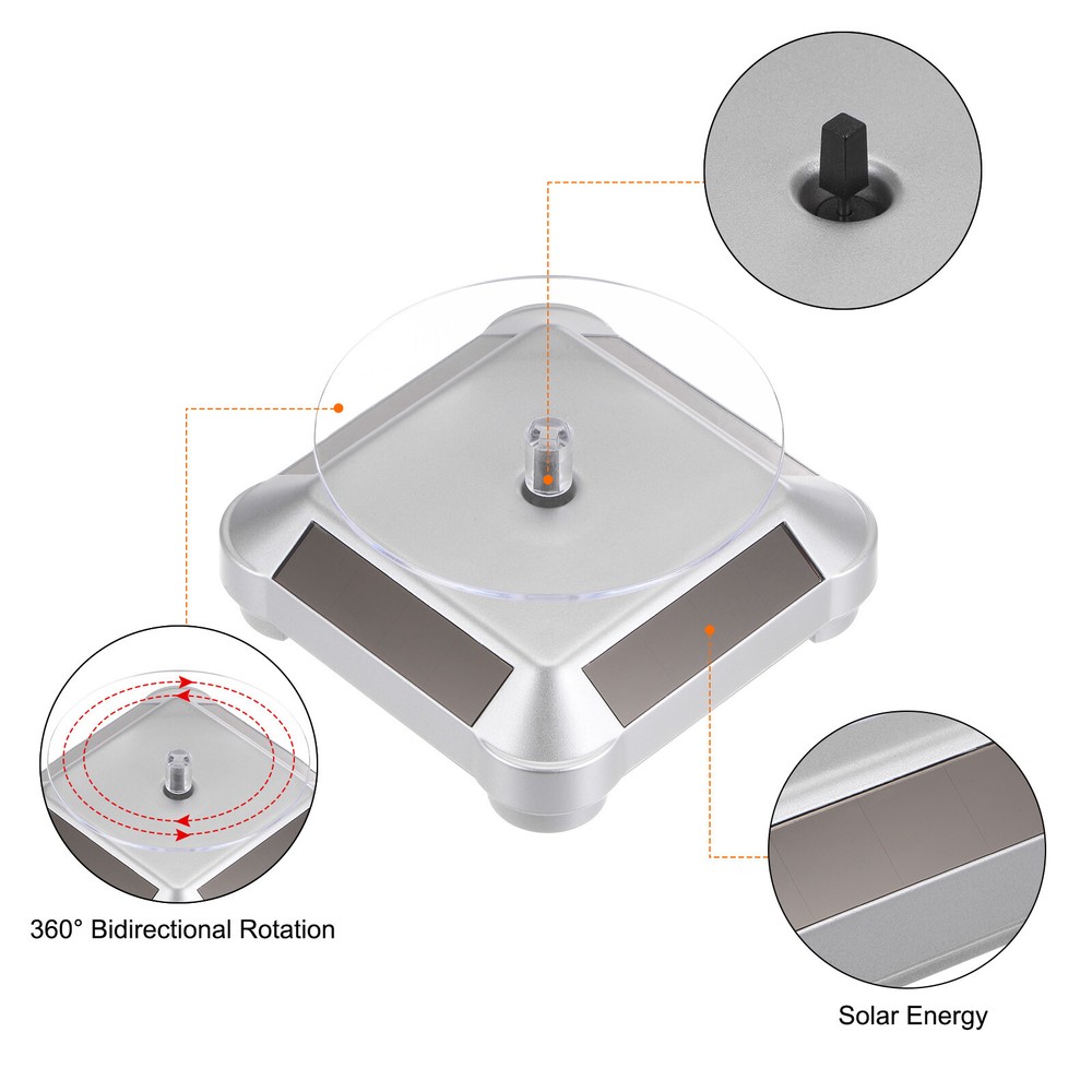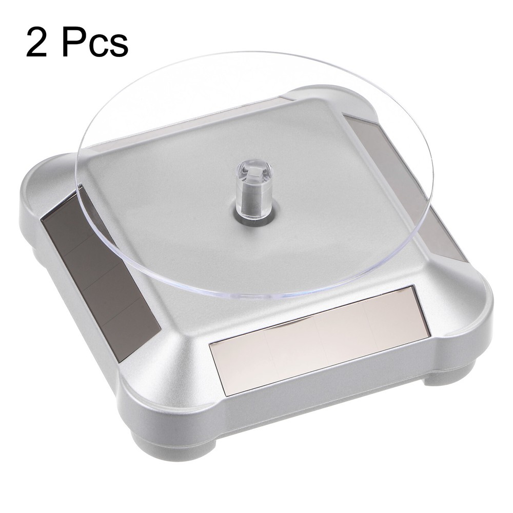 2pcs Solar Display Stand Turntable 360° Rotating Double Use ABS Silver Tone