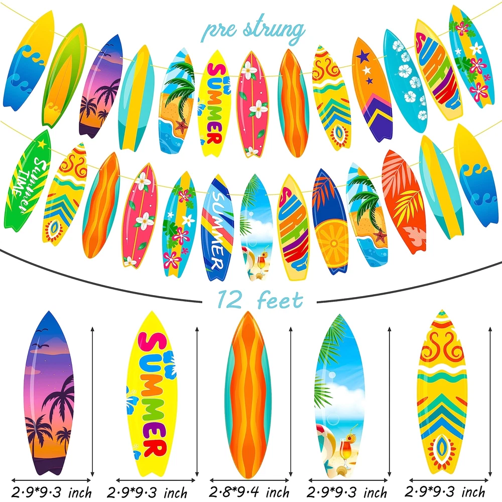2pcs Surfboard Themed Banner Decorations Summer Surfing Birthday Party Decorations Surf Birthday Garland Decorations for Swimming Pool Summer Beach Party Birthday Baby Shower Party Supplies You will receive 2 surfboard themed banners, each consists of 18 cartoon surfboard shapes with different patterns,enough amount to help you to complete a unforgettable summer surfing birthday party, our surf birthday garland is made of high-ranking card stock, handcrafted & pre-assembled, sturdy and durable, you can hang this surfboard banner directly on your door, window, wall or wherever you want to decorate, the surf birthday garland can also be used as a background prop for photos, the unique design will make your pool Hawaiian party even more colorful, but also perfect for surfing themed parties. ❤【Surfboard themed banner decorations】You will receive 2 surfboard themed banners, each consists of 18 cartoon surfboard shapes with different patterns,enough amount to help you to complete a unforgettable summer surfing birthday party,the surf birthday garland can also be used as a background prop for photos, a happy moment for you and your family. ❤【Summer surfing birthday party decorations】Our surf birthday garland is made of high-ranking card stock, handcrafted & pre-assembled, you can hang this surfboard banner directly on your door, window, wall or wherever you want to decorate,this surf birthday garland decorations is a great way to save you the time to decorate the summer surfing birthday party. ❤【Surf birthday party supplies】This surfboard themed garland consists of 18 surfboards in Hawaiian themed patterns, the design styles are diverse, bright colors of surf birthday party supplies, you can decorate them anywhere you want, the unique design will make your pool Hawaiian party even more colorful, but also perfect for surfing themed parties. ❤【Summer surfing birthday party decorations】Summer surfing birthday party decorations had already been assembled for you which means that you don't need to DIY by yourself,giving you and your family more time to enjoy the party, this surfboard garland is perfect for decorating surf theme party, surfing party, Hawaiian party, pool party, beach party, birthday party, baby shower and other party events. ❤【Swimming pool party party supplies】We really appreciate your trust and support and hope these surfboard themed banner will work for you, if you have any questions about these surfing party decorations, please contact our customer service and we will get back to you within 12 hours. Shipping from the USA All of our products are shipped from the USA, ensuring quick delivery to your destination. Payment We offer the following payment methods: PayPal, credit card, bank transfer, and eBay's secure payment system. Free Shipping & Free Returns Shipping within the USA is FREE. Additionally, any return is absolutely free for you. Risk-Free Purchase You have the option to return an item within 30 days without any justification. We cover the return shipping costs! Fast Shipping We ship immediately upon receipt of payment. Generally, the package is delivered within 2-3 days in the USA. If it takes longer, we will contact you. Quality and Costs Made in Europe, USA, China No customs fees or additional charges Total satisfaction guarantee Invoice with declared VAT available upon request in .pdf format Feedback Your feedback is very important to us. After you pay for your purchase, you will automatically receive positive feedback from us.