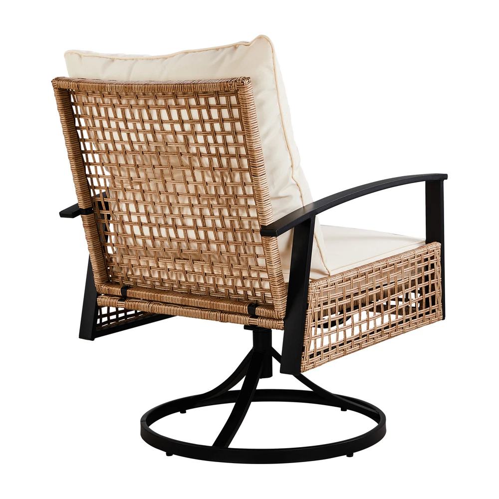 Introductions: Transform your outdoor space into a cozy retreat with our 3-Piece Outdoor Swivel Rocker Patio Set. This stylish bistro set includes two swivel rocking chairs and a matching coffee table, perfect for relaxing on your porch, backyard, or poolside. The chairs feature a unique 360-degree swivel and gentle rocking motion, offering both convenience and comfort. Enhanced with thick, plush cushions, this set ensures a luxurious seating experience while the durable, weather-resistant construction guarantees long-lasting use. Whether you're enjoying a morning coffee or hosting friends, this patio set is designed to elevate your outdoor living. Features: 1. 360° Swivel & Smooth Rocking Motion: Enjoy effortless movement with the 360° swivel base and gentle rocking feature. Perfect for relaxed conversations, lounging, and unwinding in any outdoor space. 2. Ultra-Comfortable Cushions: Sink into comfort with thick, oversized cushions that provide excellent support for your back and seat. Ideal for hours of outdoor relaxation, the cushions are designed to relieve fatigue and ensure comfort. 3. Durable, Weather-Resistant Construction: Built to last, the sturdy galvanized steel frame is rust and fade-resistant, making this set perfect for year-round outdoor use, no matter the weather. 4. Hassle-Free Assembly & Easy Maintenance: Assembly is a breeze with included hardware and clear instructions. Plus, the cushion covers feature zippers for easy removal and machine washing, while the smooth frame is simple to wipe clean. 5. Versatile & Stylish Outdoor Seating: This elegant bistro set is the perfect addition to your backyard, patio, or poolside. With a sleek design and durable build, it blends seamlessly with any outdoor decor, offering both style and functionality. Specifications: 1. Material: Iron, wicker 2. Color: Yellow 3. Chair Dimensions: (25 x 22 x 32.1) in / (63.5 x 56 x 81.5) cm 4. Table Dimensions: (17.5 x 17.5 x 18.3) in / (44.5 x 44.5 x 46.5) cm 5. Net Weight: 65 lbs / 29.5 kg Package Includes: 2 x Swivel Rocking Chairs 1 x Coffee Table 1 x Hardware Assembly Kit 1 x Instruction Manual