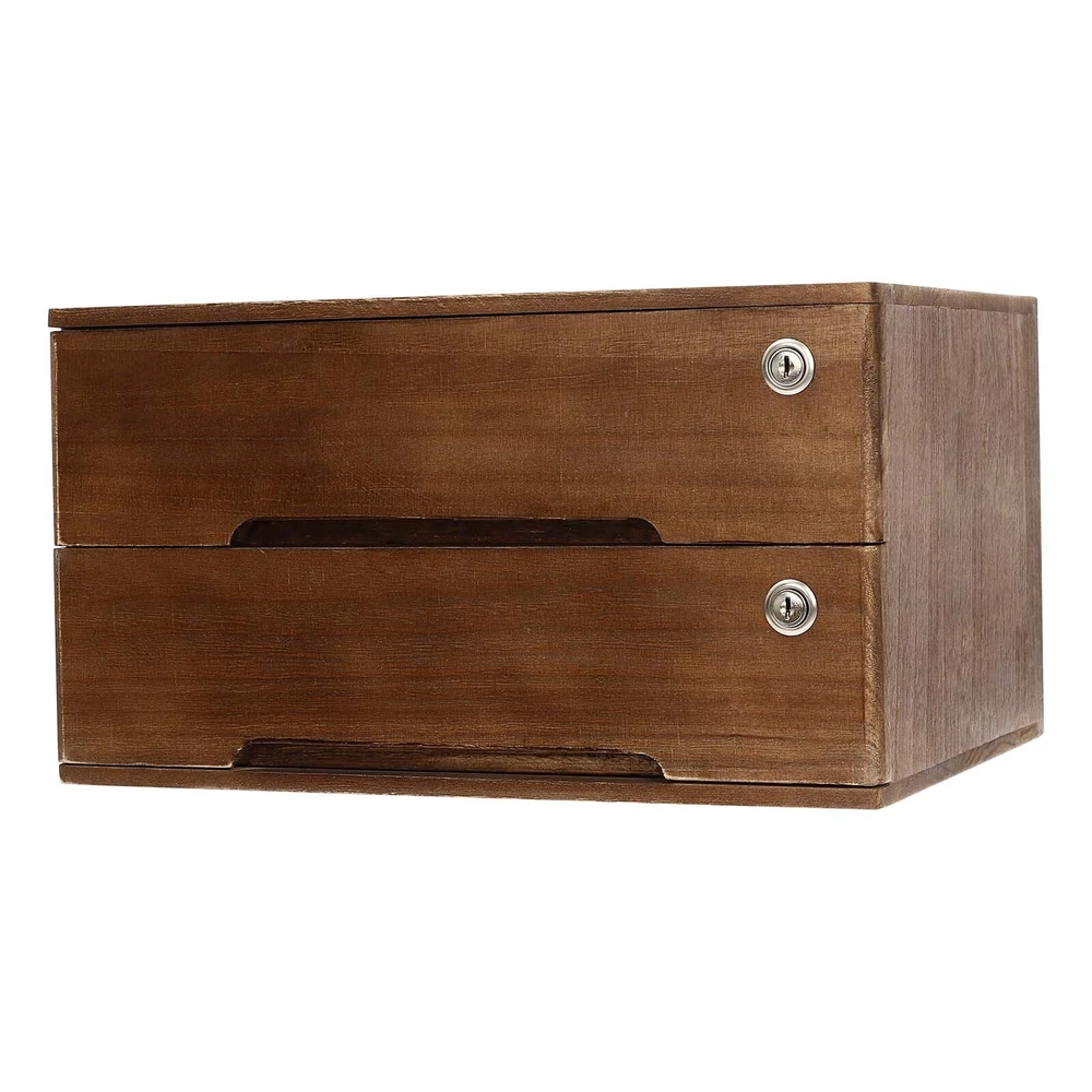 2-tiers Lockable Wooden Desktop Storage Box With Curved Handle+4 Keys For Office Description Cleanness and tidiness are a good attitude towards life and will put you and your family in a good mood, our desktop storage cabinet is made of high-quality material, has sufficient storage space, and has a beautiful and practical design, allowing you to neatly and efficiently organize your belongings and making you feel organized and relaxed. Say goodbye to a cluttered desk and enjoy a neater, more efficient life! Key Features Sturdy and Durable: It is made of high-quality wood with a painting treatment, which is eco-friendly, odorless, anti-corrosion, and rust-resistant , ensuring its beauty and long-time use. Excellent Organizer: This set of 2 drawers can sort and store data cables, kinds of files, and other daily essentials to create a cleaner, tidier office and home environment. Meanwhile, the top platform allows you to place some keys, plants, and chargers to make full use of your space. Minimalist Style: The walnut color scheme combines a rectangular shape and simple lines to create a minimalist aesthetic and reveal a strong rustic charm, adding a touch of refinement to your room. Thoughtful Design: The locking design ensures the security of your stored documents and comes with two pairs of keys for your convenience. Stable Construction: The thickened material and rectangular structure give it excellent stability, meeting your needs for storing various items without tipping o ver. Effortless Clean: Thanks to its smooth surface, simple construction, and clear texture, you can wipe it clean with a damp rag. Installation-free : What you receive will be an already assembled product, so you can use it directly, which is very convenient and time-saving. Ideal Gift: Thanks to its practicality, it will make a fine gift for family, friends, and loved ones on Christmas, Father's Day, Mother's Day, birthdays, anniversaries, and holidays. Details Rounded Edges: The rounded edges are burr-free , which is comfortable to touch a nd can care for your skin. Curved Handle: It helps you open and close the drawer conveniently while conforming to the design of the cabinet. Wood Rail: It is durable while ensuring smooth switching. Application It can be placed in the office, study, dresser, and more to store stamps, sticky notes, paper clips, scissors, bills, pens, pencils, business cards, notepads, cosmetic collections, toiletries, jewelry, hair accessories, crafts, etc. Specification Color: Walnut Material: Wood Finish: Painting Style: Compact Shape: Rectangular Assembly Required: No Product Care Instructions: Wipe with a Soft Cloth Recommended Uses For Product: Files Special Feature: Lockable Installation Type: Countertop Room Type: Home Office Door Style: Drawer, Lock Number of Tiers: 2 Each Drawer Size: 36*22*8cm/14.17*8.66*3.15in Product Size: 40*28*22cm/15.75*11*8.66in Package Size: 63*44.5*36.5cm/24.8*17.52*14.37in Gross Weight: 2.55kg/5.62lbs Net Weight: 2.3kg/5.07lbs Package Included 1* Desktop Storage Cabinet 4* Keys Notes Please note that the log product is subject to wood knots, scabs, mineral threads, etc., but it's normal. Please make sure that you do not mind before purchasing. Please note that this product does not include files and other storage items. Please place the product flat and try to avoid direct sunlight, and please do not put the furniture directly on the air conditioning or warm side, to avoid deformation and cracking of the furniture by moisture. Please allow the slight color difference caused by the shooting light and 1-3cm error due to manual measurement and make sure you do not mind before ordering. Payment Delivery details Terms of sales About us Contact us Payment We accept ebay payment 。 Fees such as import duties, taxes are not included in the item price or shipping costs. These charges are the buyer's responsibility. Delivery details Shipping: 2-9 working days to: USA Terms of sales We maintain high standards of excellence and strive for hundred percent customer satisfaction. Feedback is very important to us. We hope that you contact us immediately before you give neutral or negative feedback, so that we can address your concerns. It is impossible to address issues if we do not know about them! About us Your satis faction is our ultimate goal. We work hard to earn your trust and future business. Our certified technicians have tested each item before shipping. The unit comes with 1 year limited warranty on all manufacturing defects. a) If you receive a defective item, you may return it or ask for a discount. Please contact us within 14 days after you receive the package. b) What you returned must be intact and in its original packaging as re? u. Customer is responsible for shipping costs of the returned item. c) We will cover the cost of shipping back t with the shipping rate indicated in the registration page. We will send you a new unit or refund the full payment you paid. Thank you. Contact us Business Hour Business Hour: Monday To Friday: 8:30 AM to 5:00 PM (Beijing China time) Due to time zones, our reply to your questions may not be immediately. But within above working time, we will reply your email within 24 hours. If it's non-workdays, please kindly be patient and wait till Monday. Please contact us with ebay message. Please feel free to contact us if you have any questions. Monday To Friday: 8:30 AM to 5:00 PM (Beijing China time) Due to time zones, our reply to your questions may not be immediately. But within above working time, we will reply your email within 24 hours. If it's non-workdays, please kindly be patient and wait till Monday. Please contact us with ebay message. Please feel free to contact us if you have any questions. Brand Unbranded MPN N/A Type N/A Material Wood Assembly Required No Color Walnut Shape Rectangular Gross Weight 2.55kg/5.62lbs Net Weight 2.3kg/5.07lbs Package Size 63*44.5*36.5cm/24.8*17.52*14.37in Item Height 8.66in Item Length 15.7