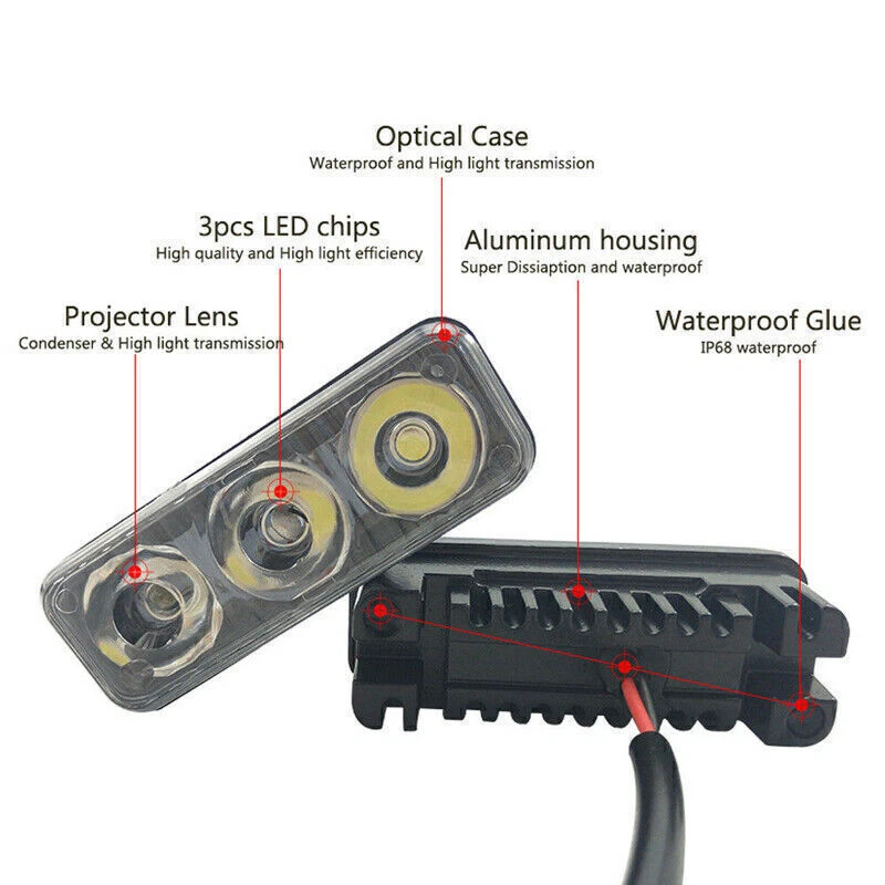 Product Description Features: 1. This listing features one pair ( 2 pieces) all new high power super xenon white 3 LED Daytime running light kits. This daytime running light kit come wiring harness and mounting bracket for an easier installation 2. The kind of mini 3-LED daytime running lamp small enough you can put for many Trucks, SUVs, 4x4 behind the grille either vertically or horizontally. 3. Simply mount these LED DRL lamps to the desired location, and wire them up to either the ACC 12V+ or any where 12V. 4. Daytime Running Lights improve safety while driving. They allow your vehicle to be seen at a much further distances. Greatly improves reaction time of oncoming vehicles 5. High power LED daytime running lights (DRL), Elaborate design, good structure, 100% waterproof, easy installation, energy saving. 6. Glass Lens for better lights transparency and good light picture, abrasion resistance. 7. Enhance lighting in rainy and foggy days to avoid traffic accident. 8. Each light with 3 SMD LEDs very strong and bright white light 9. Come with brackets and bolts for easy fitting; 10. Full aluminum housing for greatest cooling; 11. Optical designed to provide supreme photo-metric accuracy; 12. Universal fit all Cars SUV vans trucks boats with DC 12V; 13. Easy for installation. Quick universal mounting. Specifications: 1. Type oSMD LEDs 2. Colour White 3. Color temperature: 6000K ~ 7000K 4. Wattage per Piece: 9W (3W/LED) 5. Voltage: 12V 6. Material: Aluminum Housing + PC Lens 7. Waterproof, Dustproof, Weatherproof, Shock-resistant; 8. Easy for installation. Quick universal mounting. 9. 100% Brand New and tested before shipping Package Included: 2PCS LED Car Daytime Running Lights 1x Connecting Wire with built-in Fuse 2x Mounting Bracket About Us Payment Contact Us We are New Seller on ebay.We sell products with high quality and good service ,if you like our products,pls follow us and share to your friends ,we will update new products everyday. If you have any problem,pls feel free to contact us!Our worktime is 9AM-18PM.Thanks for your support in advance ! We greatly appreciate your postive feedback and 5-stars. Factory wholesale price,Buy more save more! We only accept PayPal. PayPal is the only online payment method we accept. Please make sure you have a valid/confirmed PayPal account prior bidding. Our working time is 9am-18pm. If you have any problem,pls feel free to contact us ,we will try our best to help you resolve it. If you satisfy with our service, your positive feedback will be appreciated. Your encouragement and support will always keep us forwards. Many thanks! About Us We are New Seller on ebay.We sell products with high quality and good service ,if you like our products,pls follow us and share to your friends ,we will update new products everyday. If you have any problem,pls feel free to contact us!Our worktime is 9AM-18PM.Thanks for your support in advance ! We greatly appreciate your postive feedback and 5-stars. Factory wholesale price,Buy more save more! Payment We only accept PayPal. PayPal is the only online payment method we accept. Please make sure you have a valid/confirmed PayPal account prior bidding. Contact Us Our working time is 9am-18pm. If you have any problem,pls feel free to contact us ,we will try our best to help you resolve it. If you satisfy with our service, your positive feedback will be appreciated. Your encouragement and support will always keep us forwards. Many thanks! powered by For Toyota Tacoma 2005-12 Armrest Release Handle Gray Center Console Lid Latch 8.99 USD 17.99 USD Free shipping 50% off Universal Car Gear Hand Shift Knob Cover Silicone+ Handbrake Non-Slip Protector 4.48 USD 4.98 USD Free shipping 10% off 50 Cal Bullet Aluminum Short Antenna Kit For Ford F150 Mustang Raptor F250 F350 9.99 USD 19.98 USD Free shipping 50% off RGB 48 LED Strip Under Car Tube Underglow Underbody System Neon Light Kit 28.99 USD 32.21 USD 5.0 USD 10% off BLACK Rear Console Cup Holder For 2005-2019 Nissan Frontier Xterra 96965-ZP00C 19.99 USD 39.97 USD Free shipping 50% off Center Console Armrest Latch For Dodge Ram 1500 2500 3500 2013-2018 5RQ83TX7AC 14.98 USD 16.65 USD Free shipping 10% off 16ft 5M U Shape Rubber Seal Car Door Edge Guard Molding Trim Protectors Strip 7.98 USD 8.87 USD Free shipping 10% off Fin Roof Car Antenna Carbon Fiber Shark Radio FM/AM Antena Cover Accessories US 8.58 USD 17.17 USD Free shipping 50% off Car RGB Halo Ring Angel Eye Headlight DRL Daytime Running Lamp Signal For 80mm 31.15 USD 36.65 USD Free shipping 15% off Side Mirror Sequential Blink Turn Signal Lights For VW MK5 Golf GTI R32 Rabbit 18.98 USD 37.96 USD Free shipping 50% off 2x 60cm Flexible Red Turn Signal DRL Daytime Running LED Strip Light Sequential 8.99 USD 11.1 USD Free shipping 19% off For VW Golf MK4 Jetta GTI R32 Smoke Dynamic Flowing LED Side Marker signal Light 10.99 USD 13.32 USD Free shipping 17% off For 03-12 Mercedes R230 SL500 SL55 AMG Trunk Third Brake Tail Stop Light Lamp 1x 29.98 USD 59.97 USD Free shipping 50% off For Honda Civic 2006-11 E Parking Hand Brake Handle Cover Trim 47115-SNA-A82ZA 9.99 USD 11.1 USD Free shipping 10% off