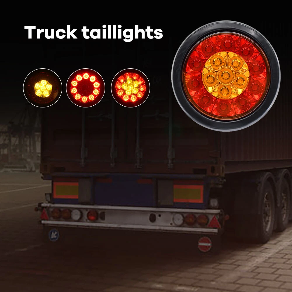 2x 4" Inch Amber/Red Round 16 LED Rear Tail Stop Turn Brake Light Truck Trailer Fitment Universal Fits any vehicles with 12V power supply,such as trailers, trucks, dump trucks, buses, semi-trailers,snowmobiles, golf carts, UTEs,camper, RV etc. Specification Type: Tail light Material: ABS & Rubber Voltage: 12V-24V (DC) Light color: Red(10 leds),white(6 leds) LED quantity: 16 LEDs per unit Service life: 50000H+ Universal for: Trucks, trailers, tractors, semi-trailer, Dump Truck, bus, boat, special vehicle, and etc. Features High brightness: Adopts 16 pieces of advanced LED lamp beads glowing brightly but not dazzlingly. 100% Brighter than bulbs and more Energy-saving. Waterproof: The tail light is highly sealed with an IP67 waterproof rating, which works even under extreme conditions such as rain and snow. Multi-Functions: Tail Light, Running Light, Stop Light, Turn Signal Light, etc Wide application: Universal Fits All vehicles with 12V Power Supply such as car, truck, trailer, Semi Trailer, Semi Trucks, boat, flatbed, bus, lorry, van, caravan, camper, RV Jeep etc. Easy to install: Easy installation with direct replacement, other modifications are not required. Connection Black wire connects to negative. Red wire:Braking light (Red light with high brightness), Blue wire:Driving light(Red light with low brightness). Yellow wire:Reversing light(Amber light) Package Included 2x Tail light Payment We can accept payment of Paypal only. Payment should be made within 7 days after purchasing. (No payment orders eBay system will automatically open unpaid dispute, and this is not good to your account.) Shipping Item will be shipped out within 48 hours upon receipt of your cleared payment. We can not ship on Sundays and other public holidays. International Buyers Please Note: 1, Import duties, taxes and charges are not included in the item price or shipping charges. These charges are the buyer's responsibility. 2, Please check with your countrys customs office to determine what these additional costs will be prior to bidding/buying. Please make sure your address in paypal is correct. we will only follow your address listed in the Paypal payment for the shipment. Combine shipment is not allowed. If you want to combine all the items together, you should still pay for all of the shipping, insurance and handling fee! Returns We offer you 30 days return. The buyer is responsible for return shipping including a result of customer error or wrong item bought: 1) If you received an incorrect, damaged, defective, or item not as described, contact us for a partial/full refund or replacement on our cost. 2) If you want to return the item, please contact us within 60 days after package received. Return products must also be in its original condition: including box, packaging and all other accessories. Feedback 1.We are appreciated your business and to improve our customer service and our commitment to quality. 2.We will leave a positive feedback immediately after payment is received. We appreciate a positive feedback as much as you do. 3.If for some reason there is any issue with the purchase, please contact us prior to leaving feedback, and we will be glad to work with you to have it resolved. Contact Us We do appreciate your purchase from our store. If you are satisfied with the item as well as our service, please kindly leave us a Positive Feedback to help develop our business. Thank you in advance. Our office hours are MONDAY - FRIDAY 9:00PM - 18:00PM PST , we do not answer any E-mails or eBay messages on weekend. All E-mail or eBay message take us around 24 hours to respond. Thanks a lot. 2x 4" Inch Amber/Red Round 16 LED Rear Tail Stop Turn Brake Light Truck Trailer Fitment Universal Fits any vehicles with 12V power supply,such as trailers, trucks, dump trucks, buses, semi-trailers,snowmobiles, golf carts, UTEs,camper, RV etc. Specification Type: Tail light Material: ABS & Rubber Voltage: 12V-24V (DC) Light color: Red(10 leds),white(6 leds) LED quantity: 16 LEDs per unit Service life: 50000H+ Universal for: Trucks, trailers, tractors, semi-trailer, Dump Truck, bus, boat, special vehicle, and etc. Features High brightness: Adopts 16 pieces of advanced LED lamp beads glowing brightly but not dazzlingly. 100% Brighter than bulbs and more Energy-saving. Waterproof: The tail light is highly sealed with an IP67 waterproof rating, which works even under extreme conditions such as rain and snow. Multi-Functions: Tail Light, Running Light, Stop Light, Turn Signal Light, etc Wide application: Universal Fits All vehicles with 12V Power Supply such as car, truck, trailer, Semi Trailer, Semi Trucks, boat, flatbed, bus, lorry, van, caravan, camper, RV Jeep etc. Easy to install: Easy installation with direct replacement, other modifications are not required. Connection Black wire connects to negative. Red wire:Braking light (Red light with high brightness), Blue wire:Driving light(Red light with low brightness). Yellow wire:Reversing light(Amber light) Package Included 2x Tail light On Jan 14, 2025 at 00:53:52 PST, seller added the following information: