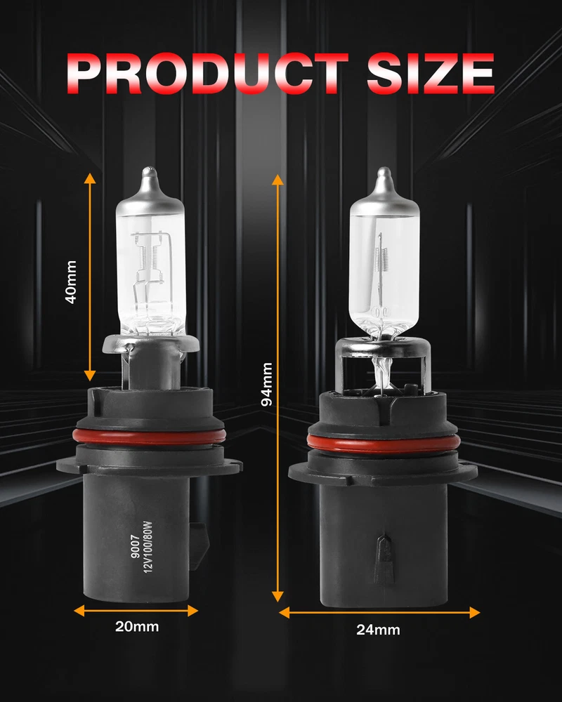 Specifications: • Bulb Socket: 9007 HB5 • Color Temperature: 3400K • Voltage(V): DC 12V • Working temperature: -40℃~+80℃ • Beam Angle: 360° • Waterproof Level: IP65 • Material: Aviation Aluminium • Super Long Service Life: ≥800 Hours • Warranty:5 Years • Canbus Error Free: No. For most vehicles, just directly plug and play. Yet for some vehicles with CAN-BUS system, it may require install decoder or load resistor to avoid hyper flash or fast blinking. • Please Note: Please check your car manual or original bulb to confirm the bulb size, length is correct or not before purchasing to save your time. Package Included: • 2x 9007 Halogen Headlight Bulbs High Low Beam ( Random shipment of new and old packaging ) Note: • Energy saving, environmental protection, Stable performance, through strict test, Use safer driving in the car • For most cars, just Plug-n-Play,no ballast required. Yet for some European vehicles or new vehicles, load resistors maybe required to avoid the error code or blinking. • When installing this bulb, please make sure to turn the car off, and key out. B ulbs are very easy to install. You just have to plug it in the socket. ( bulb has + AND -terminal. If it doesn't light up after inserting into the socket, all you need to do is insert it oppositely.) • The compatible vehicle list shows only partial cars due to the ebay limits, if your car plug is same with this bulb, the item will fit your car. • If you're not sure about it, please send us an ebay message and tell us your car year, make, model and the position you need to replace, we will help you check with it. • If you have a decoding problem or any other problems, please contact us first, we will help you with it. I'm a new seller, thanks a lot for your trust and convince! I will serve you with all my heart. On Nov 15, 2024 at 18:55:54 PST, seller added the following information: