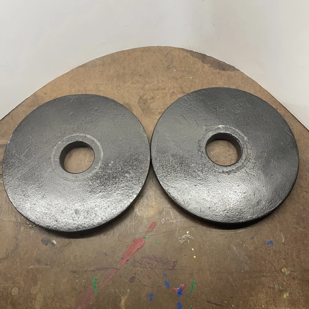 VINTAGE PAIR YORK DEEP DISH OLYMPIC 45 LB WEIGHT PLATES *ONE HAS A CHIPPED HUB*