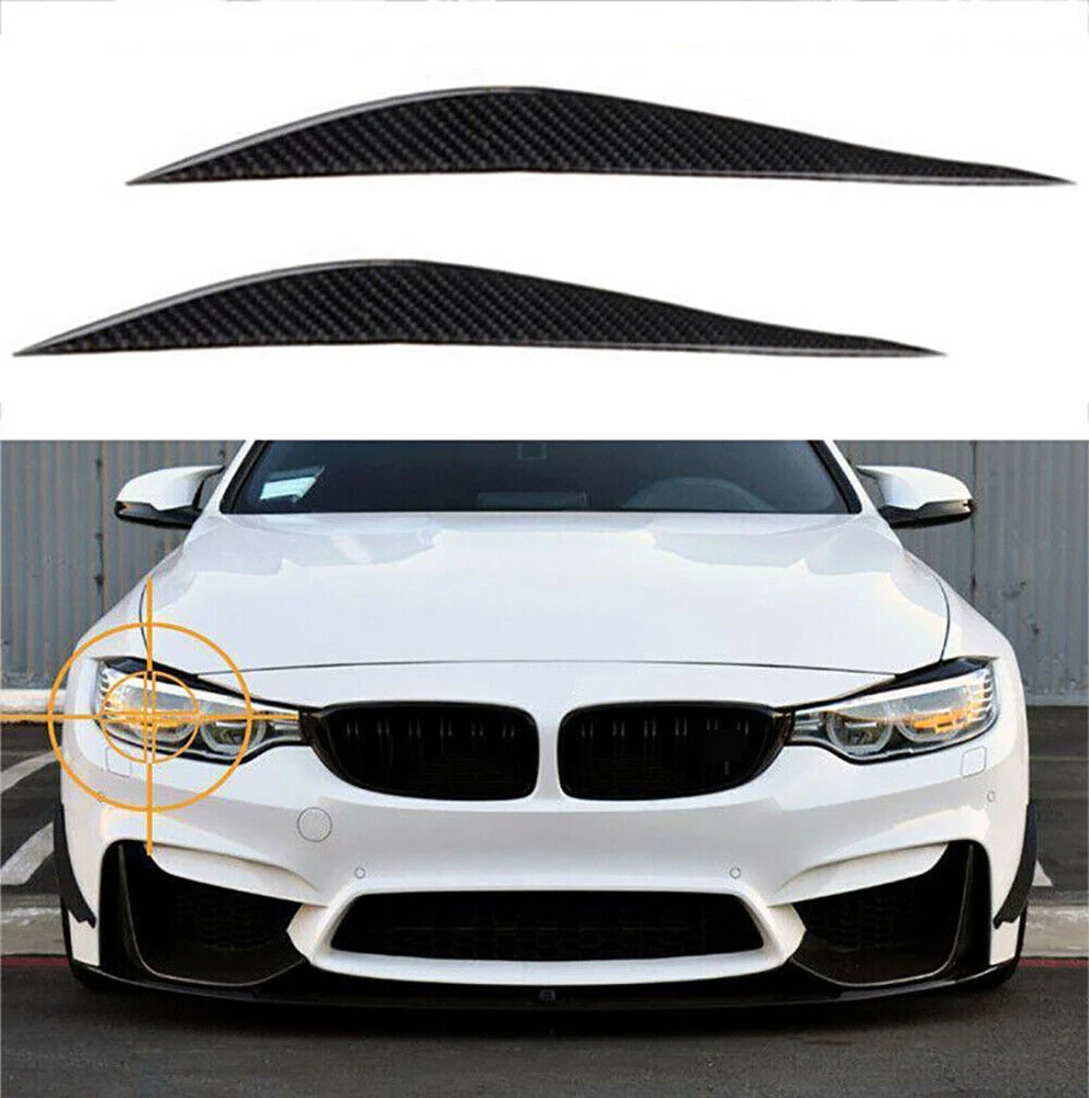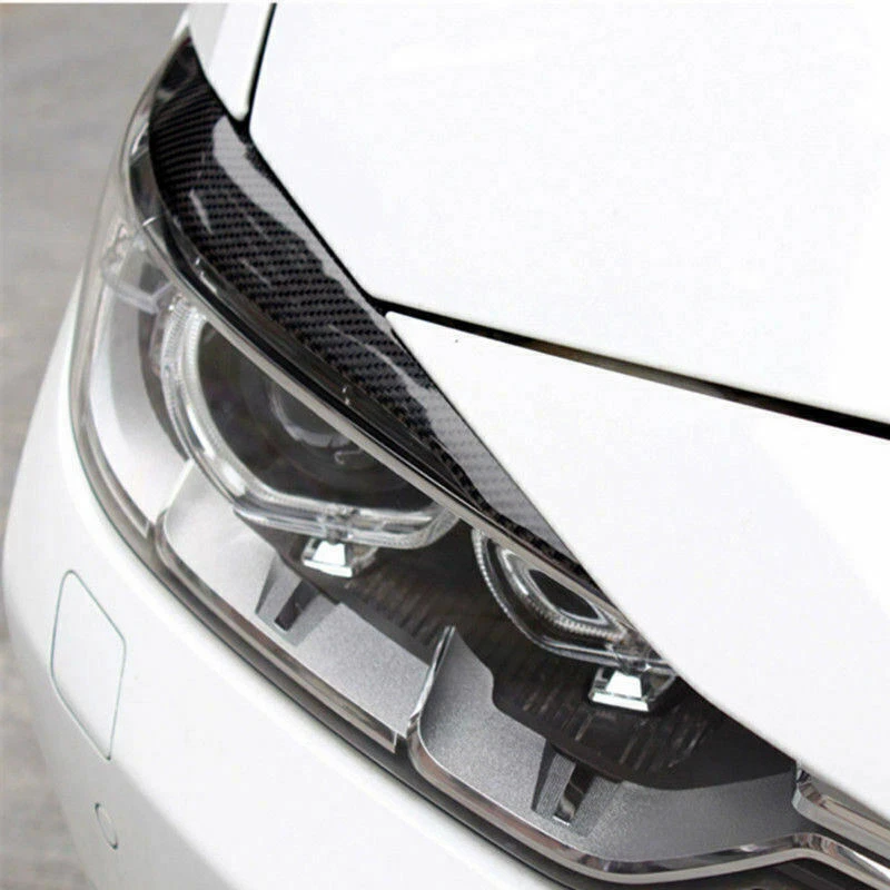 2x Carbon Fiber Headlight Eyebrow Eyelid Cover For BMW 3 Series 2012-2018 F30