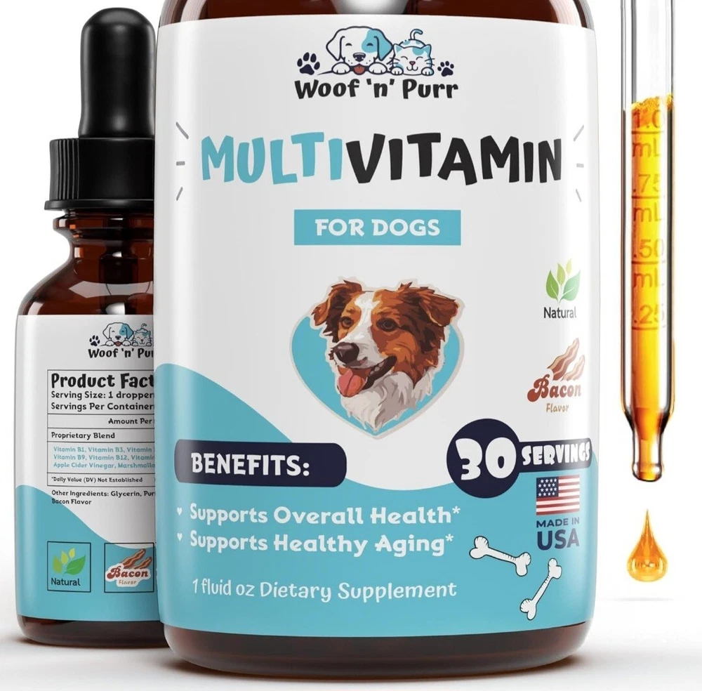 2 new and sealed 1oz bottles 30 days per bottle About this item MULTIVITAMIN FOR DOGS: This powerful liquid multivitamin includes B-complex vitamins, calcium, potassium, folic acid, vitamin D3, and more for multifunctional benefits. VETERINARIAN RECOMMENDED: a veterinarian formulated blend of vitamins and minerals, this safe and effective liquid daily supplement for pets supports their skin and coat, hip and joints, digestive health, and more. POWERED BY PROVITAE DEFENSE: 100% natural antioxidant longevity blend is formulated with clinically supported natural ingredients to help eliminate free radicals and block oxidative stress. More huggs. More life. SIMPLY ADD TO FOOD: This liquid daily supplement is easy to serve and can be mixed into your pet’s food or dropped directly in their mouth, delivering fast absorption of the nutrients.
