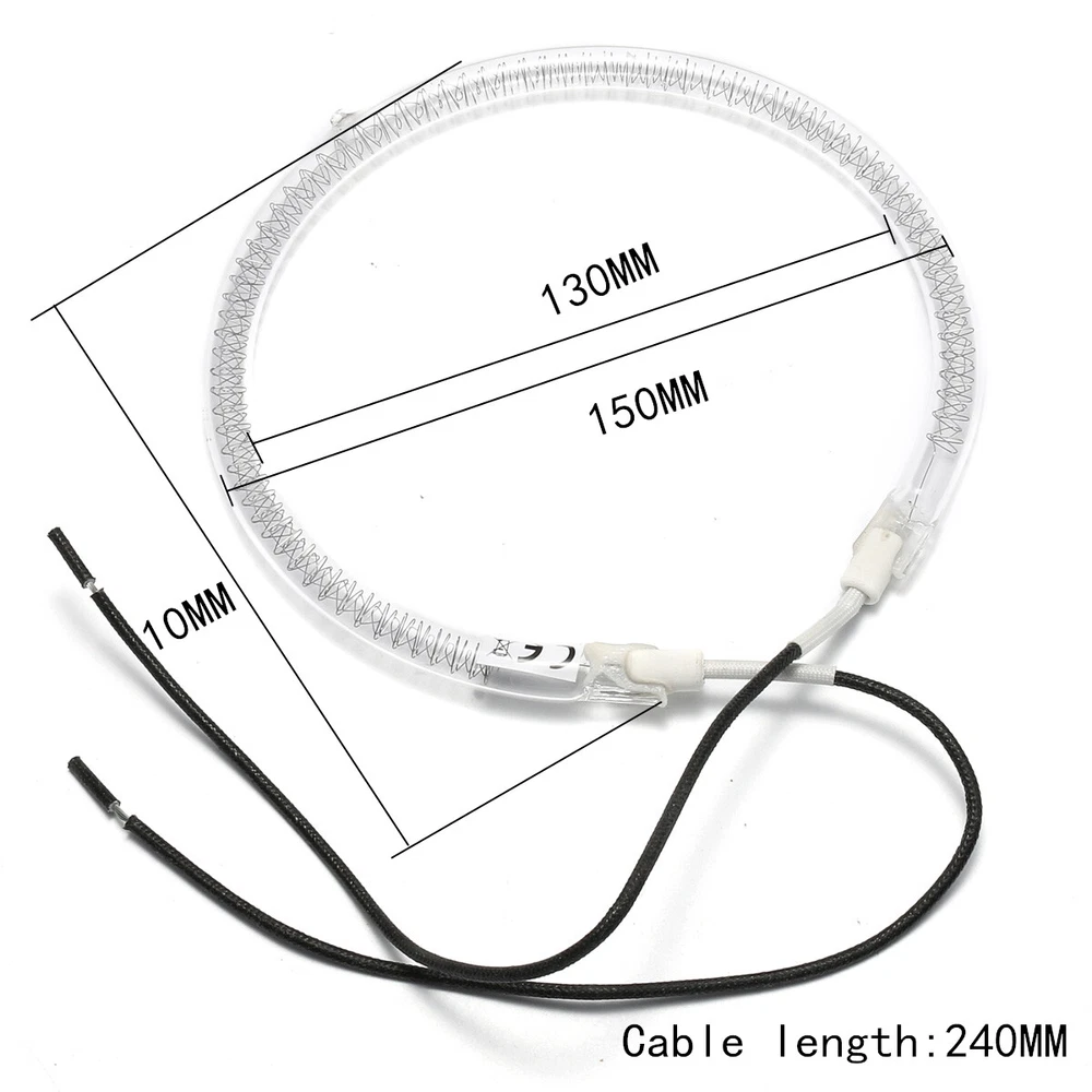 Specification: Round Halogen Oven Cooker Heating Element Bulb 1200-1400W 6" Spare Parts 220V Material: Quartz tungsten wire Color: As show Application: Baking oven,Popcorn machine Modle: 800 Service life: 500h Voltage: 220(V) Power: 1200-1400(W) Size: Bulb Dimensions: External:150MM X 150MM Internal: 130MM X 130MM Bulb Width: 10MM Cable length:240mm Package Included: 2 X Heating Element Bulb Feature: 1.This bulb is the most commonly used one.Can suit almost 99% of halogen oven cooker. The leads come without terminal on the ends and are 24m /9" approx long. 2.This bulb can fit many many brands of 12-17L capacity halogen oven. It is the universry used one. Notice: 1.Pls allow 1-3mm error due to manual measurement. 2.The color may have a little different from the shows,pls understand. On 07-Jun-21 at 04:18:05 BST, seller added the following information: