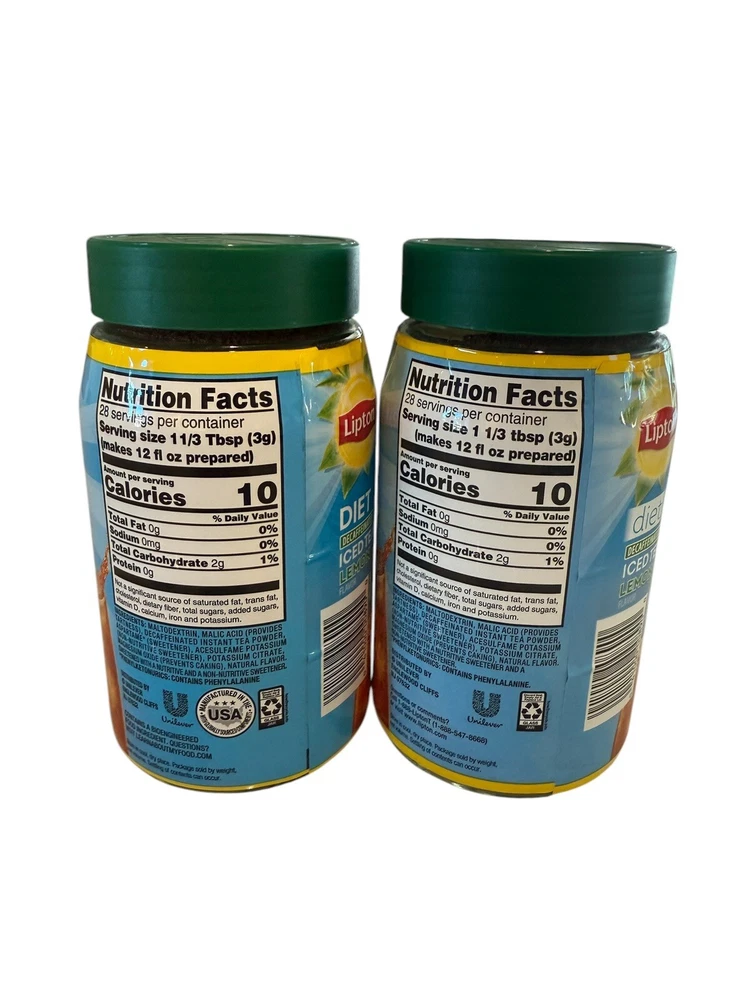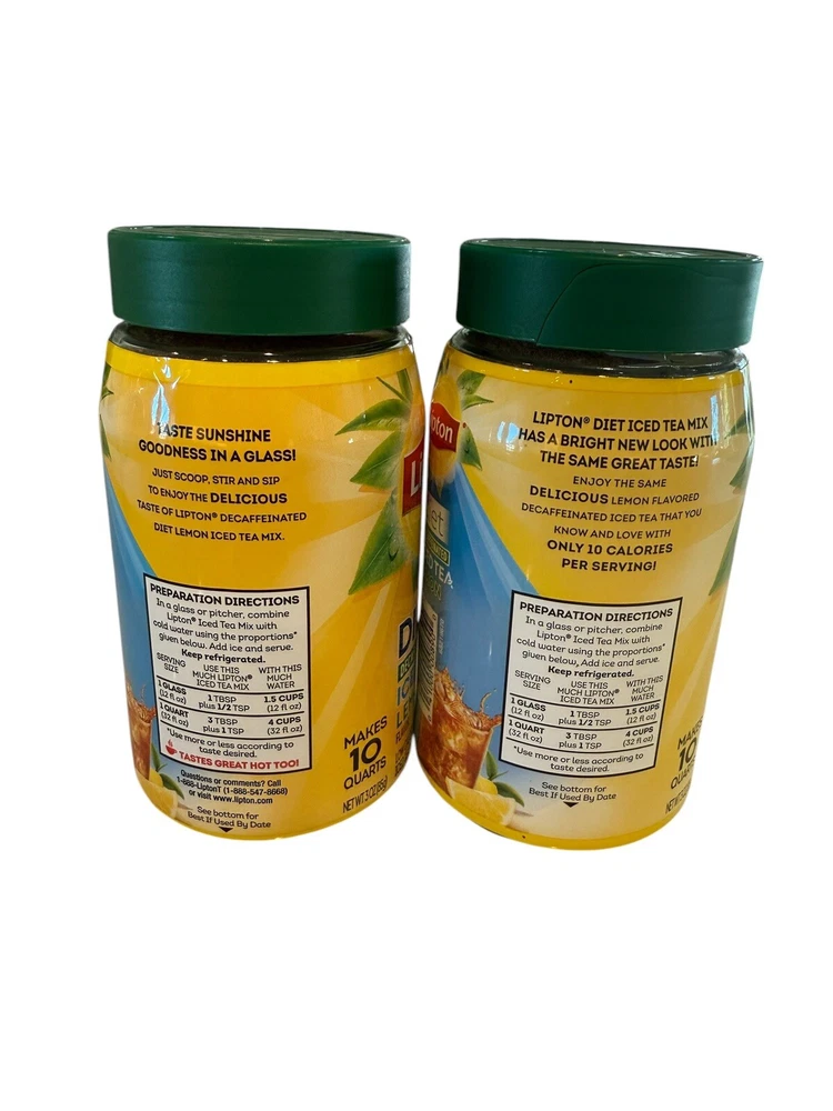 2x Lipton DIET DECAFFEINATED Iced Tea LEMON Flavor Mix 3oz/10qts Each