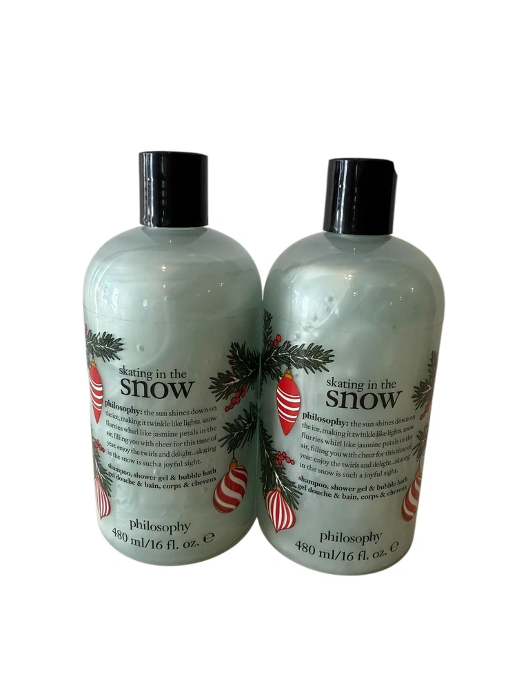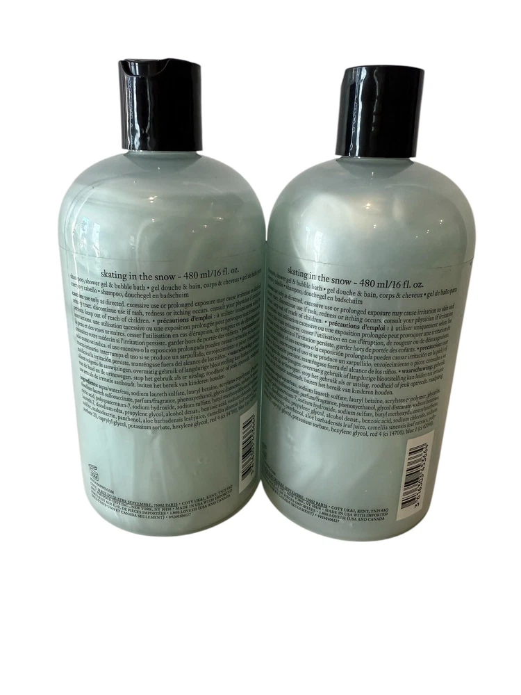 2x Philosophy Skating in the Snow 3 In 1 Shampoo Shower Gel Bath 16 oz Each
