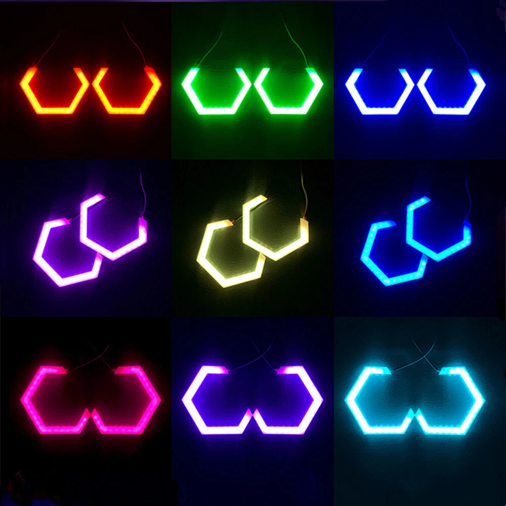 Product Informations Package: 2 x APP RGB Angle Eyes Halo Rings Headlight Description: Material: ABS Plastic Light Color: RGB Input Voltage: 9-30V Size:69mm,,as for photo Features: 1.The light color of the ring is RGB color which can be adjusted according to your preference.Offers multi colors to choose from and even flashing patterns.Wireless bluetooth control by your phone app.For both iOS and Android. 2.The brightness of this product is six times that of a CCFL. No lighting blind spots. 3.Continuous light type, uniform, no blind spots, wide luminous visual range Fitment: Fit for cars, trucks, motorcycles, lorry Benefits: Docking interface Socket design, easy to install and dismantle. High brightness light beads High quality LED beads to ensure the quality of daytime running lights High quality material Products are made with care, stable performance material transparent and no impurities, anti-waterproof design Note: 1. P lease check the size before you place order 2. This product is prohibited from being bent at right angles and dropped at random. Shipping and handling: Import duties, taxes and charges are not included in the item price or shipping charges, the buyers will be responsible for the charges if necessary. And please check with your country's customs office to determine these additional costs will be prior to buying. We would ship out the item within 7 business days after the payment is received. We will test goods carefully before sent out.The package will be sent by China post airmail.The items will arrrive to you about 7-30 days in normal conditions. We only ship to the confirmed address provided. Before you pay, please make sure the address you would like us to ship to.To ship an item ,we must have your correct telephone number and address for express delivery to your home. We reserve the right to refuse to certain countries.Delivery time will depend on destinations and other exact factors, reaching most of the countries with 7-30 days. Delivery time will be 60 days in special conditions(natural calamities,hot selling season,remote city, inefficiency of post system). If the buyer have not received the items after the time as we have promised, please contact with us before leaving any feedback or raise any dispute. About Feedback We maintain high standards of excellence and strive for 100% customer satisfaction! You can contact us first before you give us neutral or negative feedback,so that we can do our best to solve all problems.
