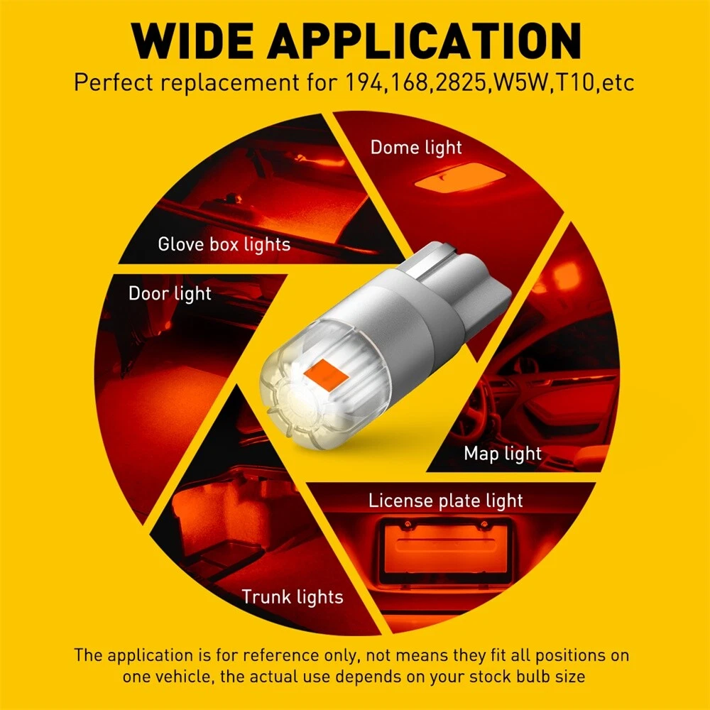 Specifications: Type: T10 Voltage:DC 12V-16V( For 12V cars only) Lamp bead: 2pcs 3030SMD Color:RED Features: *Mini size Unique thin board design, almost 1:1 same length and 1:1 beam pattern with stock halogen bulb, compatible with 194,W5W etc *High cost performance T10 194 LED Bulbs are built with extremely excellent 3014 SMD and high quality resistance, use lower energy consumption of original bulb but provide stronger light output and sufficient brightness. *Wide application 2x T10 Red Park LED Tail Light Stop Globe For HOLDEN VU COMMODORE VT VY VX VZ Specifications: Type: T10 Voltage:DC 12V-16V( For 12V cars only) Lamp bead: 2pcs 3030SMD Color:RED Features: *Mini size Unique thin board design, almost 1:1 same length and 1:1 beam pattern with stock halogen bulb, compatible with 194,W5W etc *High cost performance T10 194 LED Bulbs are built with extremely excellent 3014 SMD and high quality resistance, use lower energy consumption of original bulb but provide stronger light output and sufficient brightness. *Wide application AUXITO T10 led bulbs can be used for dome light, map light, glove light, reading light, parking light, trunk light, door light, license plate light, parking light, width light, clearance light, side maker light, etc *Plug and Play The T10 LED bulb with non-polarity design and easy installation is almost same size as halogen bulbs. No extra decoder is needed. packaging include: LED Light Bulb*2 Item Specifics UPC 782890732659 Brand AUXITO Lighting Technology LED Suitable For Tail Light Bulb Fitment Code 168/192/194/175/T10 Number of Bulbs 2 Light Color Red Type Parking/Tail/Sidemarker/Dome/Trunk Light Waterproof Rating IP68 Lighting Type LED Exterior Light Bulb Placement on Vehicle Front,Rear, Left, Right Fitment Type Direct Replacement Voltage DC 9-16V Manufacturer Warranty 1 Year Bulb Life Hours Up to 50,000 Hours Manufacturer Warranty 1 Year Bulb Life Hours Up to 50,000 Hours Payment Returns DESCRIPTION PAYMENT SHIPPING RETURN POLICY CONTACT US Shop Category Store Home LED Headlight ◈ H13 LED FogLight ◈ H10 / 9145 / 9140 LED Reverse Light ◈ T15/921/W16W LED Side Marker Light Car Parts & Accessories Tail Light assemblies Other Hot Item Picture New List Item Rear Bumper Reflector Light Left Case Driver Side For 2017-2020 Nissan Rogue USD 11.99 New Set of 2 Hood Hinges Driver & Side Passenger LH& RH HO1236143 HO1236144 Pair USD 31.99 4Inch Tail Round Lights w/ Bracket Mounting White 4X Waterproof Universal Lights USD 45.99 For Toyota Corolla 2020-2024 Back Primers Front Window Windshield Side Spoiler USD 12.99 Halogen LED Chrome Housing Headlights Lamps For 10-12 Nissan Altima 4Door Sedan USD 109.99 Help & Info Payment Policy Shipping Policy Return Policy FAQ About Us 2x T10 Red Park LED Tail Light Stop Globe For HOLDEN VU COMMODORE VT VY VX VZ Specifications: Type: T10 Voltage:DC 12V-16V( For 12V cars only) Lamp bead: 2pcs 3030SMD Color:RED Features: *Mini size Unique thin board design, almost 1:1 same length and 1:1 beam pattern with stock halogen bulb, compatible with 194,W5W etc *High cost performance T10 194 LED Bulbs are built with extremely excellent 3014 SMD and high quality resistance, use lower energy consumption of original bulb but provide stronger light output and sufficient brightness. *Wide application AUXITO T10 led bulbs can be used for dome light, map light, glove light, reading light, parking light, trunk light, door light, license plate light, parking light, width light, clearance light, side maker light, etc *Plug and Play The T10 LED bulb with non-polarity design and easy installation is almost same size as halogen bulbs. No extra decoder is needed. packaging include: LED Light Bulb*2 Payment Returns All rights reserved. On Nov 24, 2024 at 05:07:10 PST, seller added the following information:
