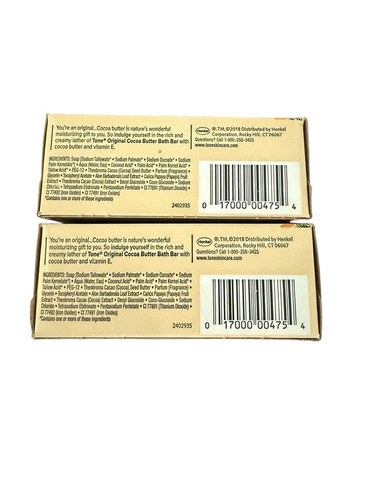 2x TONE BAR SOAP 4.25 Oz Each Original Scent COCOA BUTTER & VITAMIN E.