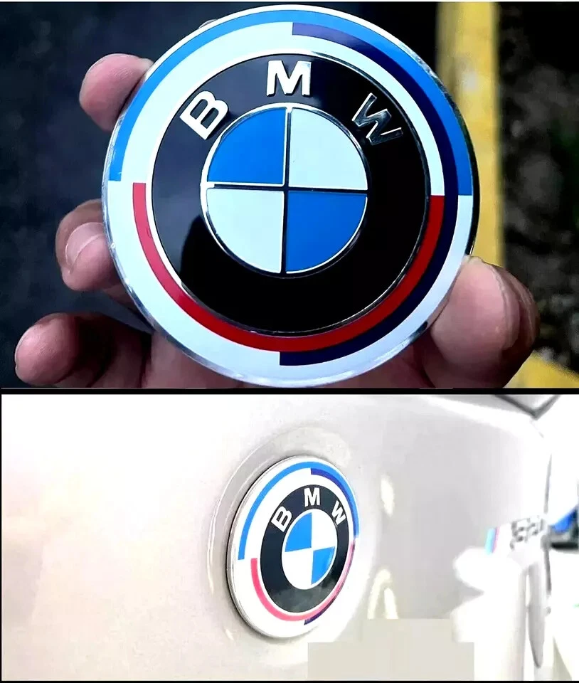 2x logo capot 82mm + coffre 74mm emblème BMW 50E anniversaire F40 , F30, F31 Taille: 82mm + 74MM MATERIAU : ABS / ALUMINIUM