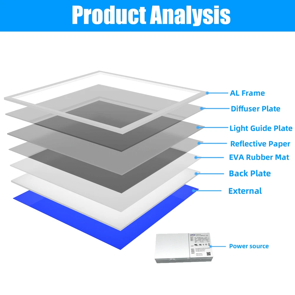 2x2ft LED Panel Lights, 5000K LED Drop Ceiling Lights Fixture, 0-10V Dimmable