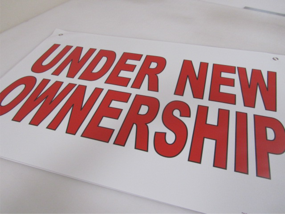 2x3 Red & White Banner Sign Now Under New Ownership with Discounted Size & Price