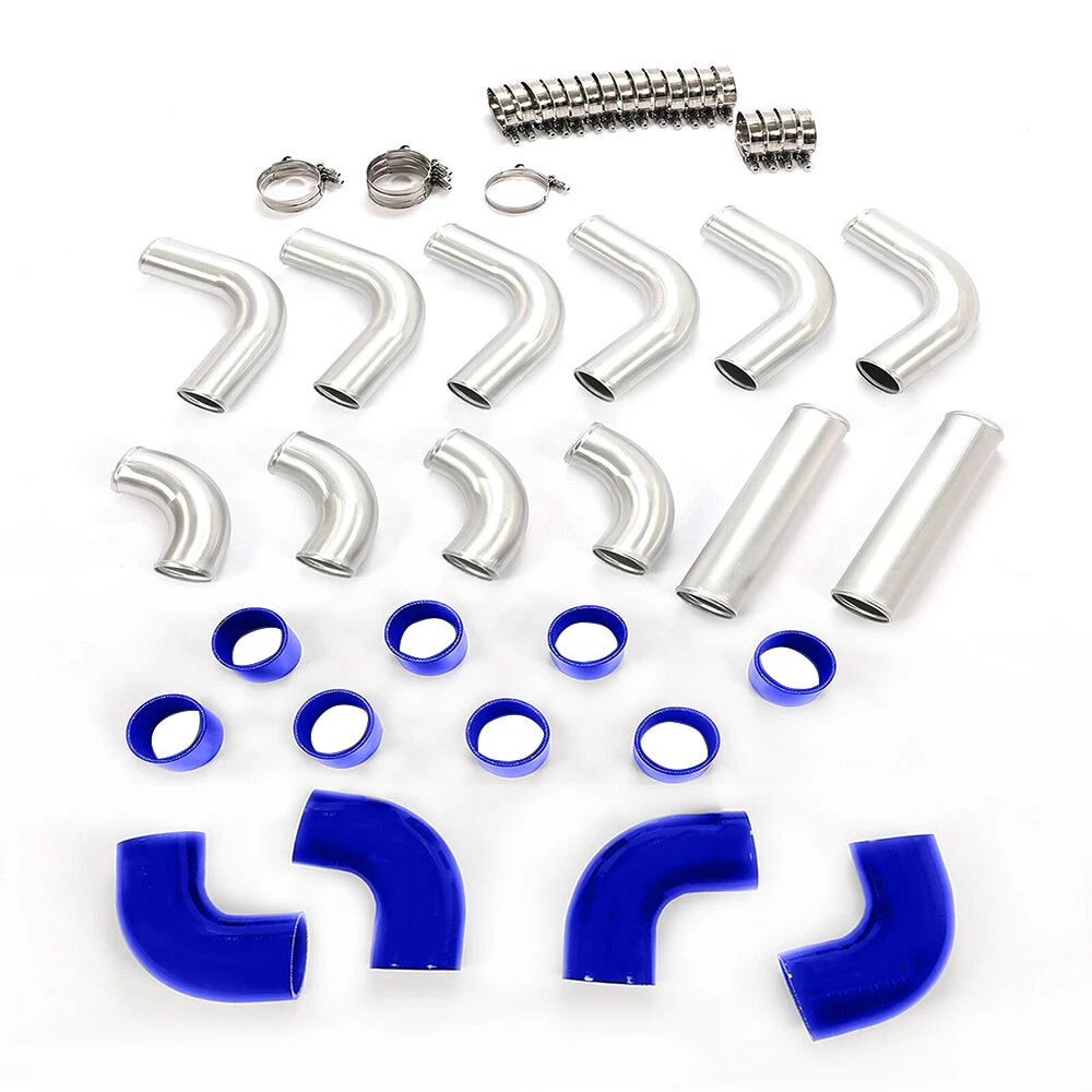 3" 12Pcs Turbo Aluminum Universal Intercooler Piping Kit + T-Bolt Clamps Blue Description: Higher Corrosion Resistance: The chrome plating effectively protects the base material from oxidation and corrosion, especially suitable for humid or chemically aggressive environments. Stronger Wear Resistance: The hardness of the chrome plating makes it more resistant to scratches and wear. Lustrous Appearance: Chrome surfaces are usually brighter and more reflective, offering a very striking and attractive look. Better Durability: Due to its resistance to corrosion and wear, chrome-plated items generally have a longer lifespan. Wide Applicability: Chrome plating can be applied to a variety of base materials, not limited to aluminum, offering greater material selection flexibility. Features: Made of High quality Aluminum 3" inch Piping Diameter Increase 65% Air Flow Comparing with other Standard Piping Triple reinforced silicone able to withstand high heat and pressure Will reduce vibration transfer due to hard impact shifting or engine movement Specifications: 100% Brand New Warranty :90 Day Free Reurn:30 Day Color: Chrome / Black as pics shown Surface finish: Oxidation Material: High quality T-6061 Lightweight Aluminum Piping 3" inch Piping Diameter Increase 65% Air Flow Comparing with other Standard Piping Triple reinforced silicone able to withstand high heat and pressure Will reduce vibration transfer due to hard impact shifting or engine movement Fitment: Universal Fitment,Upgrades for turbo car (modification require) Packing List: 2x Straight Aluminum Pipe 6x 90 Degree Mandrel Bent Long Aluminum Pipe 4x 90 Degree Mandrel Bent Short Aluminum Pipe 8x Straight Silicone Couplers 4x Elbow Silicone Couplers 24x Stainless Steel T Bolt Clamps(as shown in the picture).