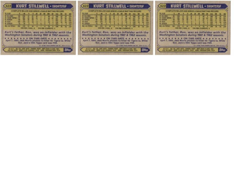 (3) 1987 Topps #623 Kurt Stillwell RC Cincinnati Reds Card Lot Condition: NM