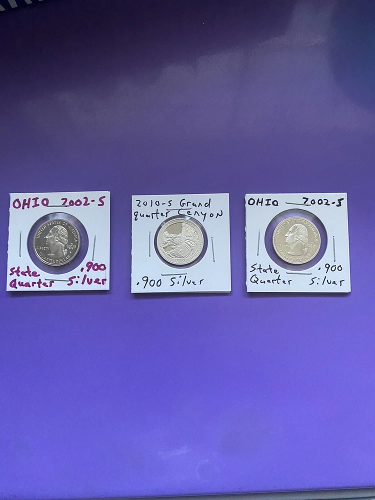 (3) proof like .900 quarters. Two Ohio state and one Grand Canyon. See pics please