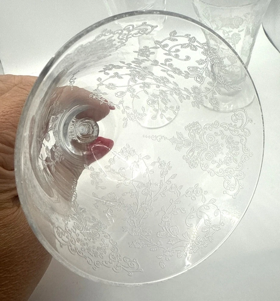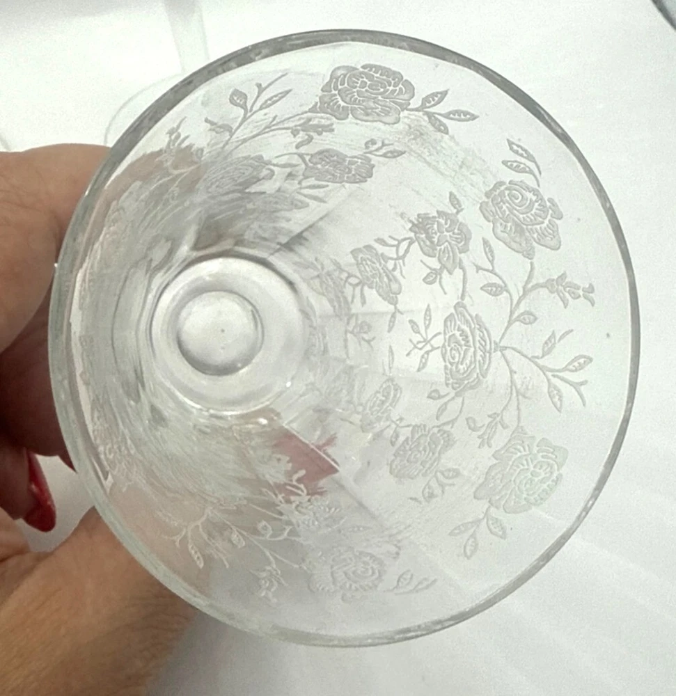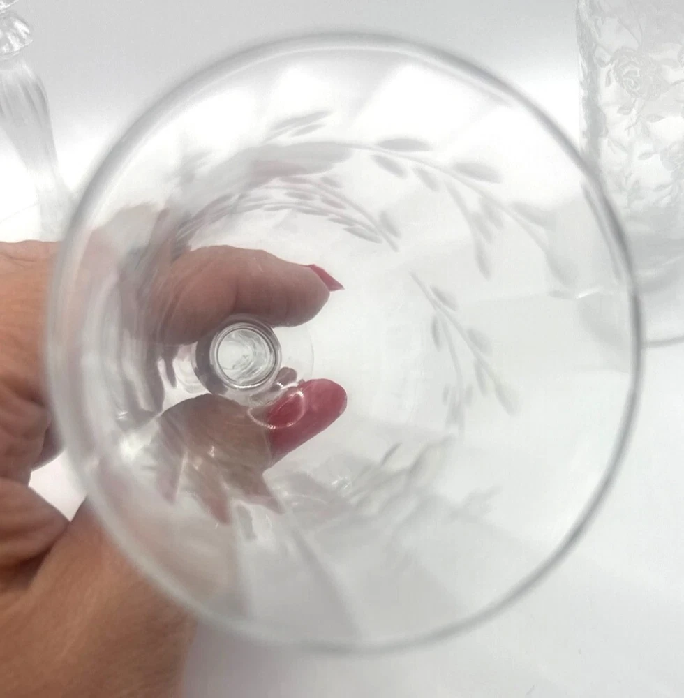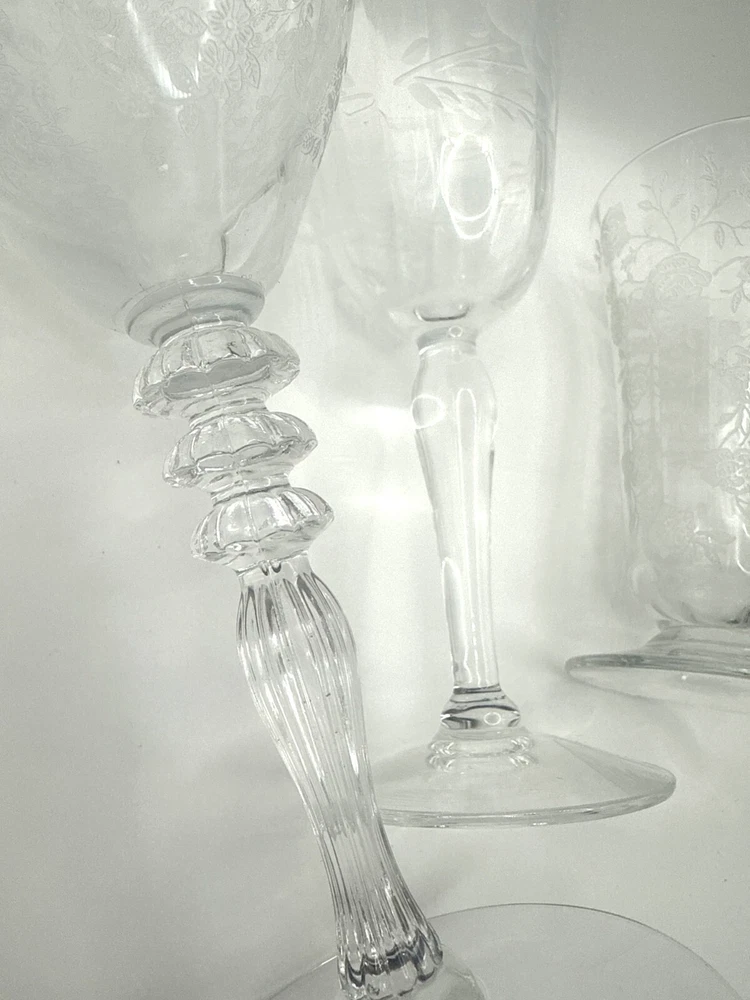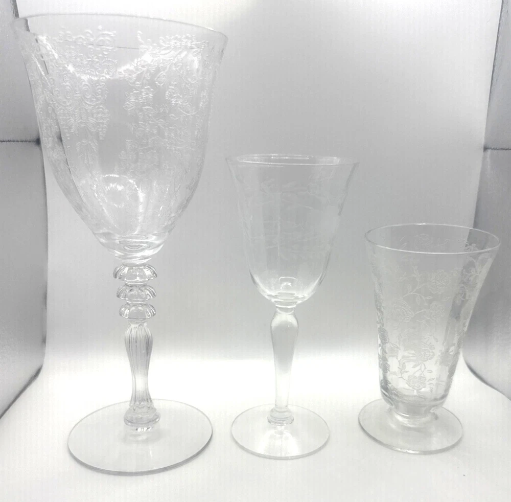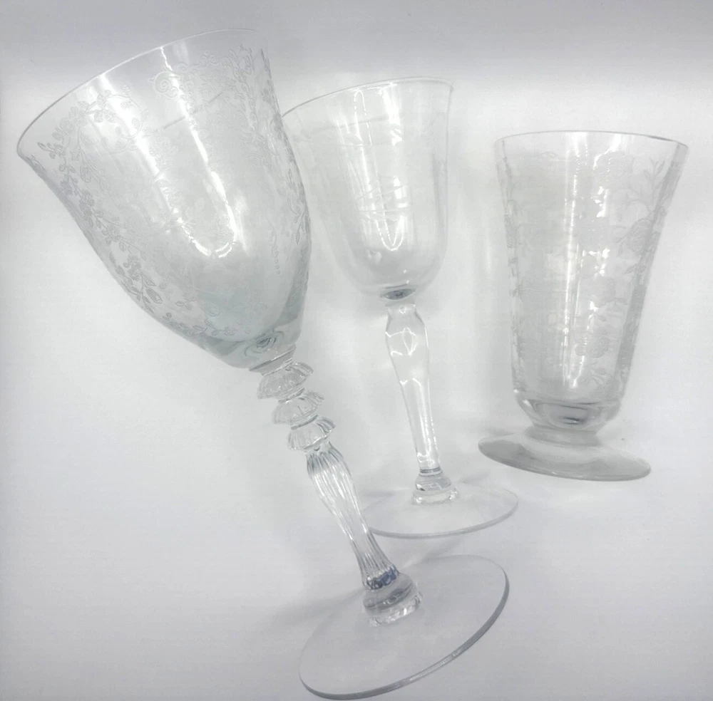 Each of these glasses tells a story of elegance and timeless tradition. Delicate floral etchings dance gracefully on clear glass, perfect for creating memorable moments. • Vintage-style floral etching • Sturdy glass construction • Clear glass for versatile use Came from my Great Grandmother's estate. Top to bottom = 8 inches (tallest), 6 inches (medium), 4 inches (shortest) Note: I do have more of these if needed. Condition: Pre-Owned Good Note: patterns do not match. "Power Selling Mom Consignment"