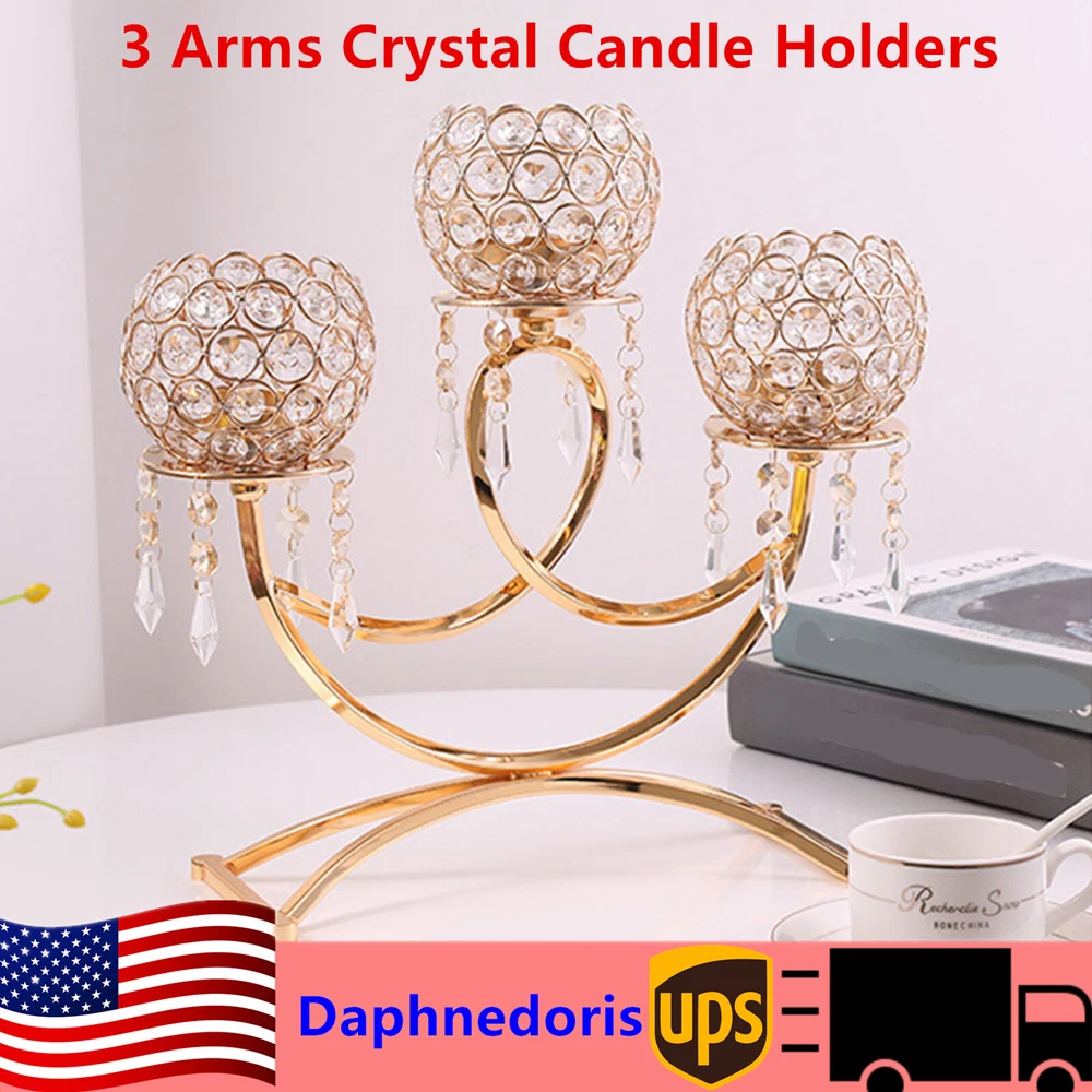 3 Arms Crystal Candle Holders for Table Centerpiece, Weddings,Dining Room Golden Crystal Golden Candle Holder Candelabra Banquet Table Decor Candlelight Dinner Wedding D escription: Type: Candlestick Material: iron + alloy + crystal Color: Golden Overall size: 26.5*14*32cm/10.3"*5.5"*12.6" Single Diameter: 6.5cm/2.6" Weight: 1.1kg Uses: holiday decoration, lighting accessories, exhibition hall decoration, wedding decoration, banquet decoration, stage props, DIY jewelry accessories, etc. P roduct features: Made of high-quality metal and crystal, sturdy and durable, long service life The thicker design of the bottom bracket makes it more stable The crystal sparkles at night to create a romantic atmosphere Suitable for weddings, banquets, festivals and other occasions Tips: Metal products are easily rusted when exposed to water, so they need to be dried and stored as soon as possible after being exposed to water. Maintenance: Regularly remove dust and prevent moisture; wipe with soft cotton fabric. When not in use, it needs to be sealed and stored. Packing size: 28*35*15cm/11"*13.8"*5.9" Package weight: 1.2kg packing list: 1* Crystal candle holder Payment Delivery details Terms of sales About us Contact us Payment We accept ebay payment 。 Fees such as import duties, taxes are not included in the item price or shipping costs. These charges are the buyer's responsibility. Delivery details Shipping: 2-9 working days to: USA Terms of sales We maintain high standards of excellence and strive for hundred percent customer satisfaction. Feedback is very important to us. We hope that you contact us immediately before you give neutral or negative feedback, so that we can address your concerns. It is impossible to address issues if we do not know about them! About us Your satis faction is our ultimate goal. We work hard to earn your trust and future business. Our certified technicians have tested each item before shipping. The unit comes with 1 year limited warranty on all manufacturing defects. a) If you receive a defective item, you may return it or ask for a discount. Please contact us within 14 days after you receive the package. b) What you returned must be intact and in its original packaging as re? u. Customer is responsible for shipping costs of the returned item. c) We will cover the cost of shipping back t with the shipping rate indicated in the registration page. We will send you a new unit or refund the full payment you paid. Thank you. Contact us Business Hour Business Hour: Monday To Friday: 8:30 AM to 5:00 PM (Beijing China time) Due to time zones, our reply to your questions may not be immediately. But within above working time, we will reply your email within 24 hours. If it's non-workdays, please kindly be patient and wait till Monday. Please contact us with ebay message. Please feel free to contact us if you have any questions. Monday To Friday: 8:30 AM to 5:00 PM (Beijing China time) Due to time zones, our reply to your questions may not be immediately. But within above working time, we will reply your email within 24 hours. If it's non-workdays, please kindly be patient and wait till Monday. Please contact us with ebay message. Please feel free to contact us if you have any questions. On Feb 12, 2025 at 19:25:56 PST, seller added the following information: