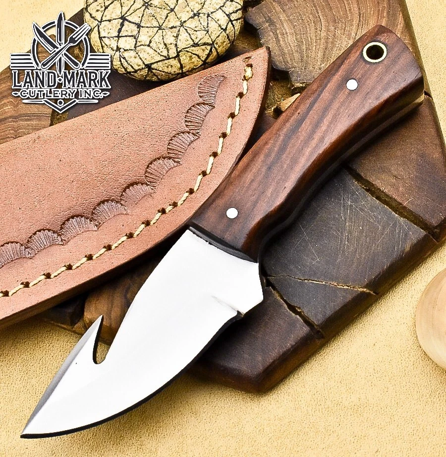 Custom Hand Made D2 STEEL HUNTING KNIFE WITH PAKKA WOOD HANDLE We offer a shipping discount for More then one purchased . And discount will be apply on combine invoice, Discount will not apply on separate payment. ITEM DETAILS OVER ALL LENGTH 3.0 inches long (Approx) HANDLE LENGTH 1.5 inches long (Approx) BLADE LENGTH 1.5 inches long (Approx) BLADE HARDNESS 58-60 HRC Which Holds The Sharp Edge For Long Time. HANDLE PAKKA WOOD COVER LEATHER SHEATH This Awesome custom made KNIFE has a nice hand forged with the combination of 4340 & 1080 steel. HOW OUR DAMASCUS IS MADE: All our Damascus is real and not just an acid etch. Damascus is a mixture of 1080HC and 4340 nickel carbon. You heat them up together and then fold the bar over and over to get the desired layers, ours are 396 layers. Then you burn the blade in acid, and it turns the nickel satin color and the high carbon turns blackish gray. This is how the layers are exposed to show the layers of the new steel created coined "Damascus". All Damascus is acid etched to show the layers. If you high polish the metal it will be shinny satin like all steels. Only after you burn the sides of the blade with acid do you see the layers of the two steels. Makes sense? After we make our knives we high polish the handles and put an edge on the blade. The high polishing buffs off the acid burned layer of the handle, and the blade edge is sharpened and the acid burned edge becomes satin. You can re-burn the tang of the blade near the handles and the edge of the blade and it will show the layers once more. All our knives are hand made, durable and unique ***** YOU WILL RECEIVED THE SAME KNIFE Qality Standards Our Damascus blades are made from high quality non-stainless steels which rival or exceed any Damascus blade made from the 10 series with 4340. Our Damascus combination has taken years to perfect and has been tested under a variety of application which will offer professional performance in categories of toughness, strength (lateral stress) and edge honing and holding ability. In a 5 spot Rockwell test our blades will average near or close to 58 which offers a perfect balances between its toughness and strength.Our blades due to carbon content need to be regularly treated with wax and/or 3 in 1 oil to maintain its superior quality. Questions if you have any question feel free to send us message we aim to answer all questions within 24 hours Feedback If you are not satisfied with our service please contact us before leaving any negative or natural feedback. We will resolve all issues as quickly as possible. Disclaimer We are not responsible for any injuries associated with the use of our tools. Our products are intended for legal use only by responsible buyers. Therefore, we will not sell our products to anyone under the age of 18. Before bidding please check your country laws as some countries Custom don't allow this. If your purchase is held by Custom Authorities in your country/State we will not be responsible for that and no refund will be issued Shipping We offer a 20% shipping discount for More then one purchased . And discount will be apply on combine invoice, Discount will not apply on separate payment We ship within 24 hours after receiving complete payment but this can be delayed due to week ends or Governments and Religious Festivals . . This is beyond our control and we apologize for this inconvenience. Precautions Our Tools are very sharp so open and use them very carefully We are not responsible for any injuries associated with the use of our tools Tips to Care knife 1. NEVER STORE YOUR KNIFE FOR LONG TIME IN LEATHER SHEATH. 2. LEATHER CAN ABSORB WATER, WHICH WILL RUST THE KNIFE. 3. ALWAYS CLEAN THE BLADE AFTER USING WITH OIL OR WAX
