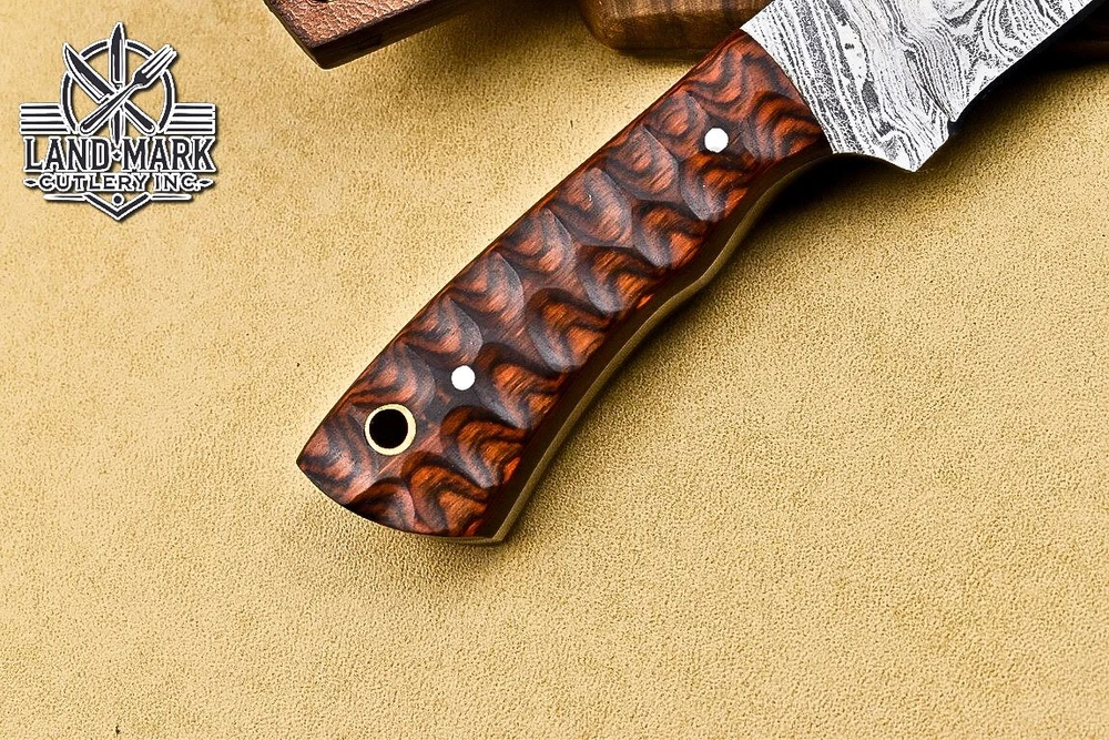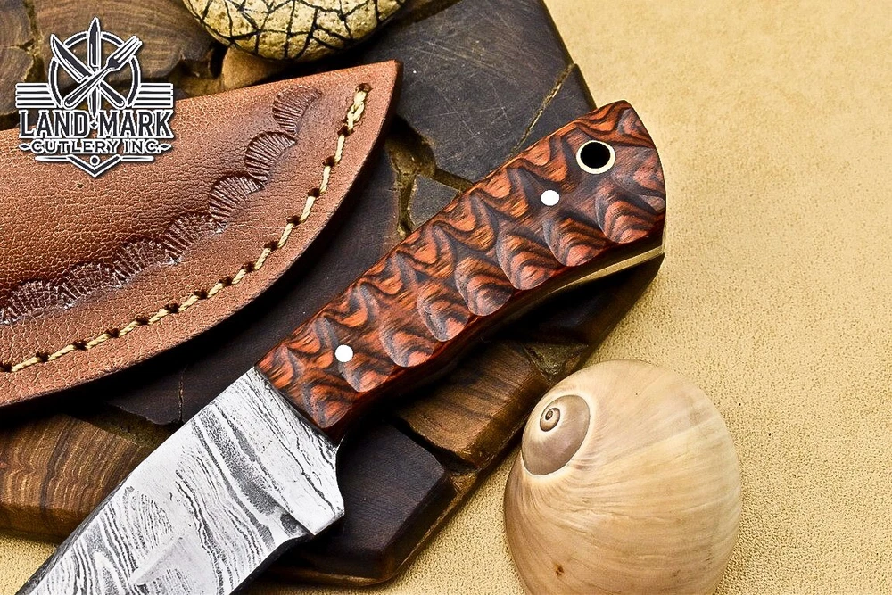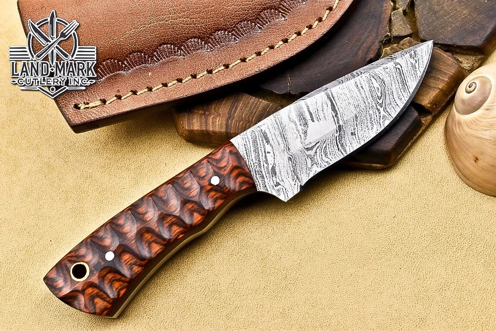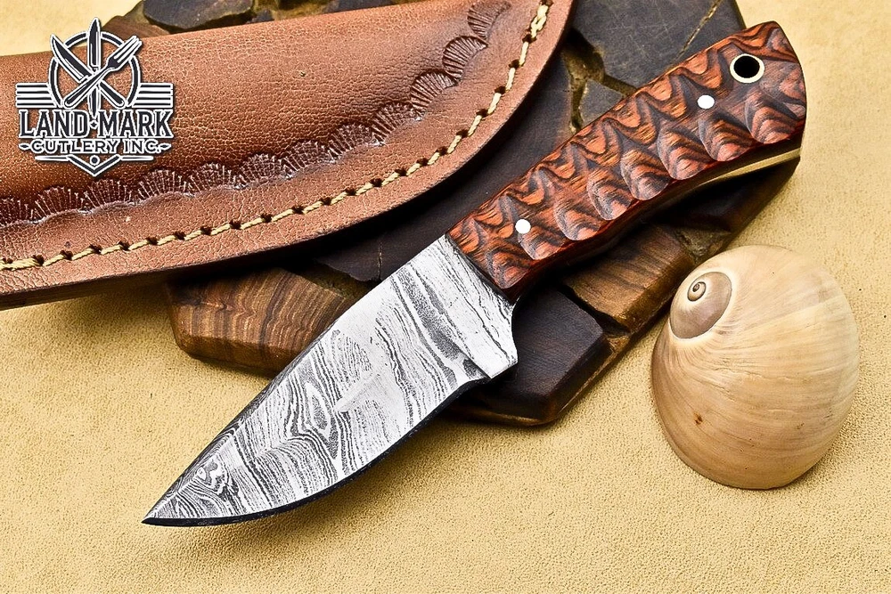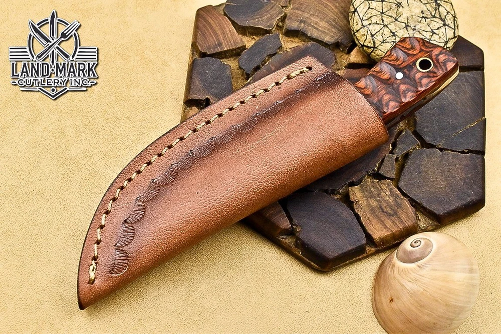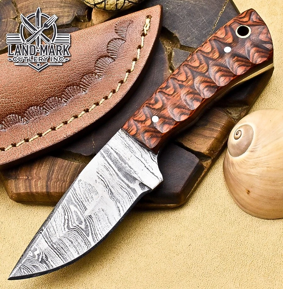 Custom Hand Made DAMASCUS STEEL HUNTING KNIFE WITH PAKKA WOOD HANDLE We offer a shipping discount for More then one purchased . And discount will be apply on combine invoice, Discount will not apply on separate payment. ITEM DETAILS OVER ALL LENGTH 3.0 inches long (Approx) HANDLE LENGTH 1.5 inches long (Approx) BLADE LENGTH 1.5 inches long (Approx) BLADE HARDNESS 58-60 HRC Which Holds The Sharp Edge For Long Time. HANDLE PAKKA WOOD COVER LEATHER SHEATH This Awesome custom made KNIFE has a nice hand forged with the combination of 4340 & 1080 steel. HOW OUR DAMASCUS IS MADE: All our Damascus is real and not just an acid etch. Damascus is a mixture of 1080HC and 4340 nickel carbon. You heat them up together and then fold the bar over and over to get the desired layers, ours are 396 layers. Then you burn the blade in acid, and it turns the nickel satin color and the high carbon turns blackish gray. This is how the layers are exposed to show the layers of the new steel created coined "Damascus". All Damascus is acid etched to show the layers. If you high polish the metal it will be shinny satin like all steels. Only after you burn the sides of the blade with acid do you see the layers of the two steels. Makes sense? After we make our knives we high polish the handles and put an edge on the blade. The high polishing buffs off the acid burned layer of the handle, and the blade edge is sharpened and the acid burned edge becomes satin. You can re-burn the tang of the blade near the handles and the edge of the blade and it will show the layers once more. All our knives are hand made, durable and unique ***** YOU WILL RECEIVED THE SAME KNIFE Qality Standards Our Damascus blades are made from high quality non-stainless steels which rival or exceed any Damascus blade made from the 10 series with 4340. Our Damascus combination has taken years to perfect and has been tested under a variety of application which will offer professional performance in categories of toughness, strength (lateral stress) and edge honing and holding ability. In a 5 spot Rockwell test our blades will average near or close to 58 which offers a perfect balances between its toughness and strength.Our blades due to carbon content need to be regularly treated with wax and/or 3 in 1 oil to maintain its superior quality. Questions if you have any question feel free to send us message we aim to answer all questions within 24 hours Feedback If you are not satisfied with our service please contact us before leaving any negative or natural feedback. We will resolve all issues as quickly as possible. Disclaimer We are not responsible for any injuries associated with the use of our tools. Our products are intended for legal use only by responsible buyers. Therefore, we will not sell our products to anyone under the age of 18. Before bidding please check your country laws as some countries Custom don't allow this. If your purchase is held by Custom Authorities in your country/State we will not be responsible for that and no refund will be issued Shipping We offer a 20% shipping discount for More then one purchased . And discount will be apply on combine invoice, Discount will not apply on separate payment We ship within 24 hours after receiving complete payment but this can be delayed due to week ends or Governments and Religious Festivals . . This is beyond our control and we apologize for this inconvenience. Precautions Our Tools are very sharp so open and use them very carefully We are not responsible for any injuries associated with the use of our tools Tips to Care knife 1. NEVER STORE YOUR KNIFE FOR LONG TIME IN LEATHER SHEATH. 2. LEATHER CAN ABSORB WATER, WHICH WILL RUST THE KNIFE. 3. ALWAYS CLEAN THE BLADE AFTER USING WITH OIL OR WAX