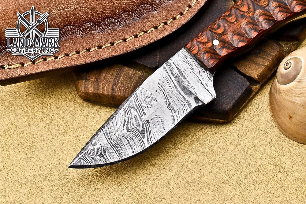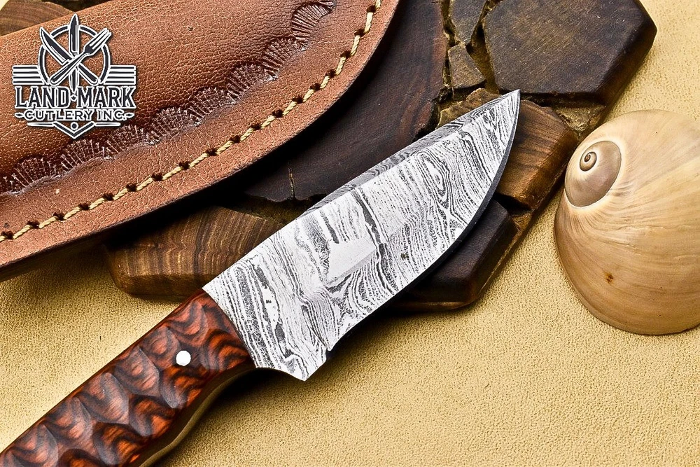 3" BEAUTIFUL DAMASCUS STEEL HUNTING SKINNER KNIFE WITH ORANGE PAKKA WOOD HANDLE