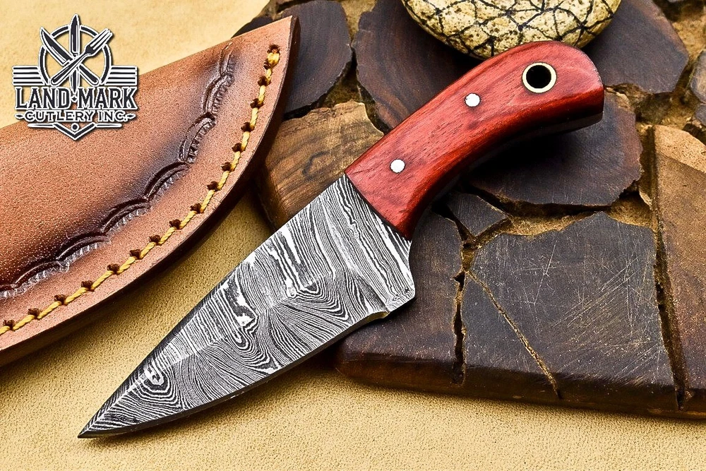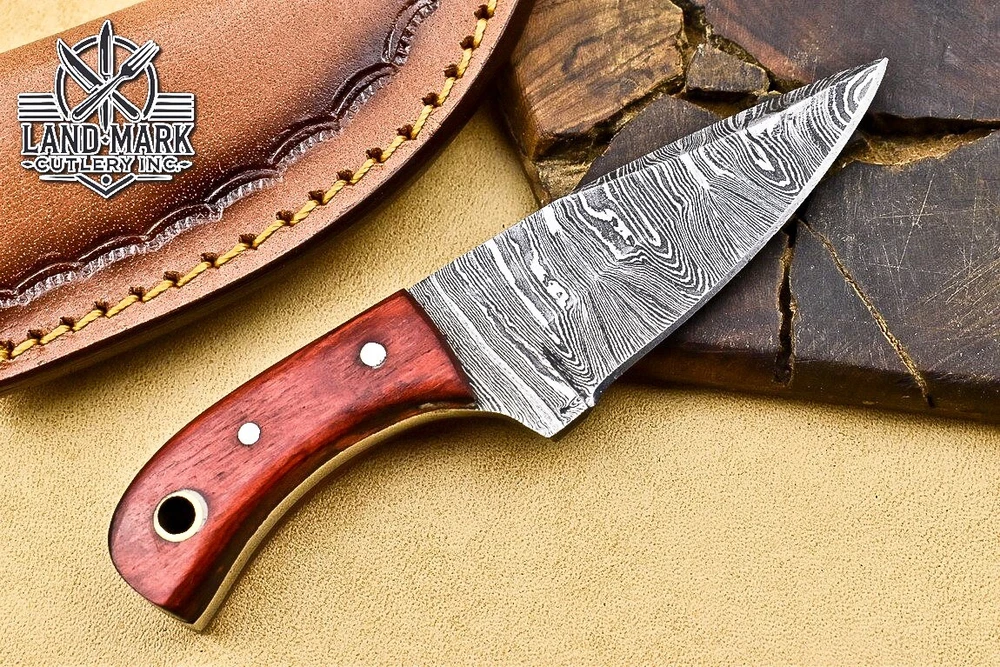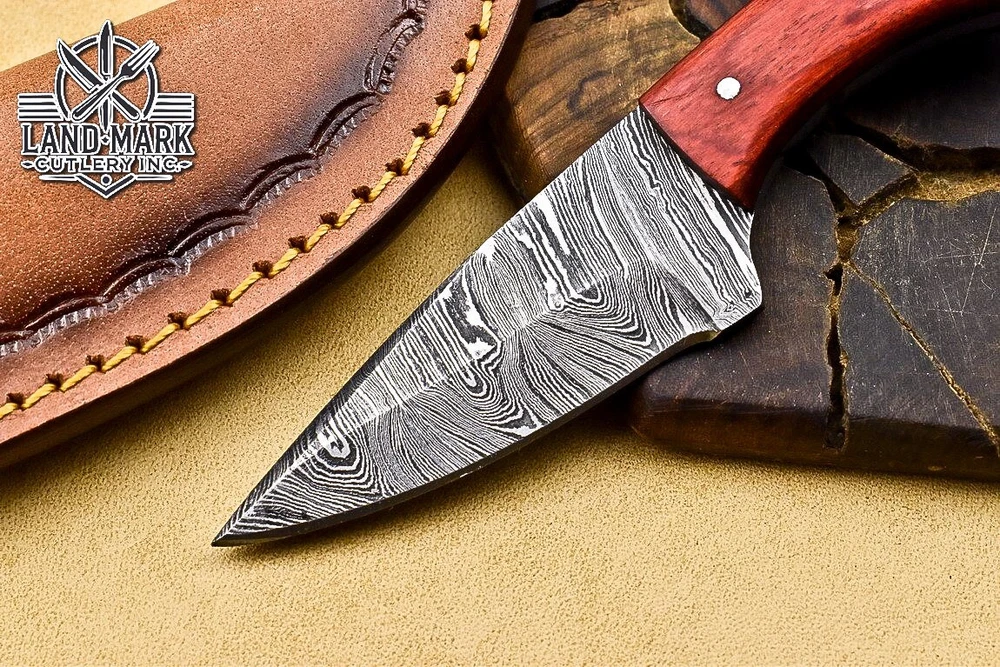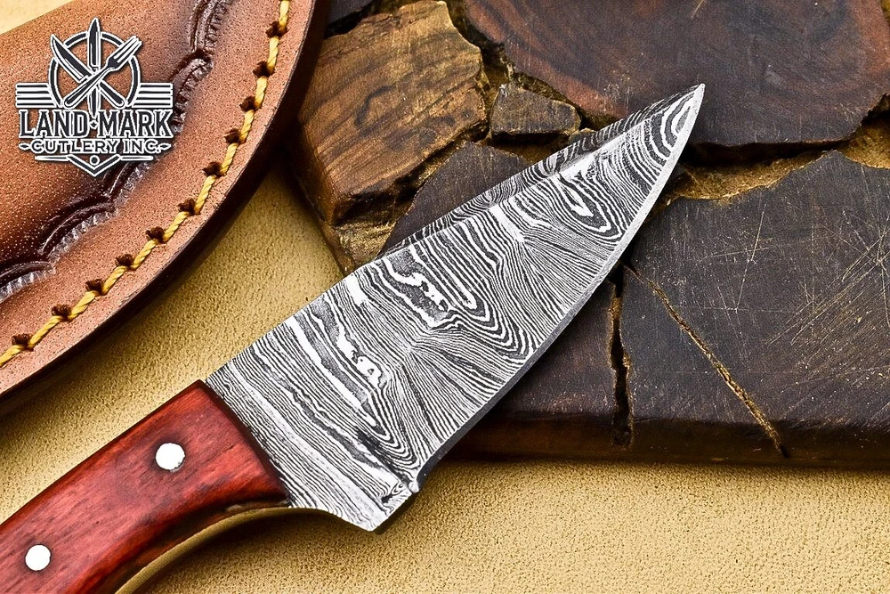 Custom Hand Made DAMASCUS STEEL HUNTING KNIFE WITH PAKKA WOOD HANDLE We offer a shipping discount for More then one purchased . And discount will be apply on combine invoice, Discount will not apply on separate payment. ITEM DETAILS OVER ALL LENGTH 3.0 inches long (Approx) HANDLE LENGTH 1.5 inches long (Approx) BLADE LENGTH 1.5 inches long (Approx) BLADE HARDNESS 58-60 HRC Which Holds The Sharp Edge For Long Time. HANDLE PAKKA WOOD COVER LEATHER SHEATH This Awesome custom made KNIFE has a nice hand forged with the combination of 4340 & 1080 steel. HOW OUR DAMASCUS IS MADE: All our Damascus is real and not just an acid etch. Damascus is a mixture of 1080HC and 4340 nickel carbon. You heat them up together and then fold the bar over and over to get the desired layers, ours are 396 layers. Then you burn the blade in acid, and it turns the nickel satin color and the high carbon turns blackish gray. This is how the layers are exposed to show the layers of the new steel created coined "Damascus". All Damascus is acid etched to show the layers. If you high polish the metal it will be shinny satin like all steels. Only after you burn the sides of the blade with acid do you see the layers of the two steels. Makes sense? After we make our knives we high polish the handles and put an edge on the blade. The high polishing buffs off the acid burned layer of the handle, and the blade edge is sharpened and the acid burned edge becomes satin. You can re-burn the tang of the blade near the handles and the edge of the blade and it will show the layers once more. All our knives are hand made, durable and unique ***** YOU WILL RECEIVED THE SAME KNIFE Qality Standards Our Damascus blades are made from high quality non-stainless steels which rival or exceed any Damascus blade made from the 10 series with 4340. Our Damascus combination has taken years to perfect and has been tested under a variety of application which will offer professional performance in categories of toughness, strength (lateral stress) and edge honing and holding ability. In a 5 spot Rockwell test our blades will average near or close to 58 which offers a perfect balances between its toughness and strength.Our blades due to carbon content need to be regularly treated with wax and/or 3 in 1 oil to maintain its superior quality. Questions if you have any question feel free to send us message we aim to answer all questions within 24 hours Feedback If you are not satisfied with our service please contact us before leaving any negative or natural feedback. We will resolve all issues as quickly as possible. Disclaimer We are not responsible for any injuries associated with the use of our tools. Our products are intended for legal use only by responsible buyers. Therefore, we will not sell our products to anyone under the age of 18. Before bidding please check your country laws as some countries Custom don't allow this. If your purchase is held by Custom Authorities in your country/State we will not be responsible for that and no refund will be issued Shipping We offer a 20% shipping discount for More then one purchased . And discount will be apply on combine invoice, Discount will not apply on separate payment We ship within 24 hours after receiving complete payment but this can be delayed due to week ends or Governments and Religious Festivals . . This is beyond our control and we apologize for this inconvenience. Precautions Our Tools are very sharp so open and use them very carefully We are not responsible for any injuries associated with the use of our tools Tips to Care knife 1. NEVER STORE YOUR KNIFE FOR LONG TIME IN LEATHER SHEATH. 2. LEATHER CAN ABSORB WATER, WHICH WILL RUST THE KNIFE. 3. ALWAYS CLEAN THE BLADE AFTER USING WITH OIL OR WAX