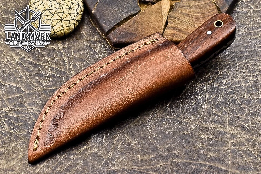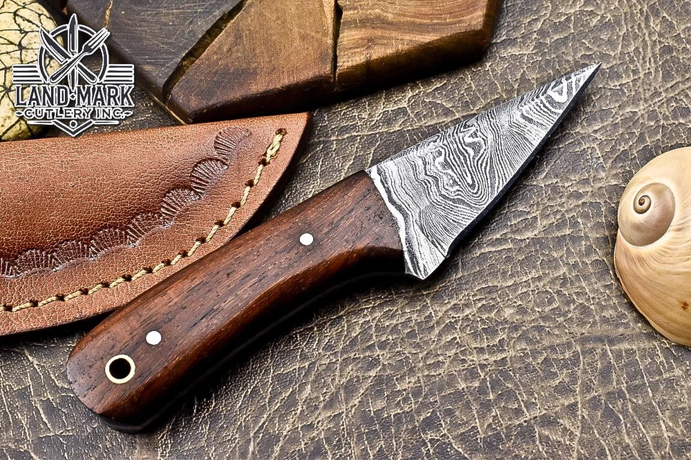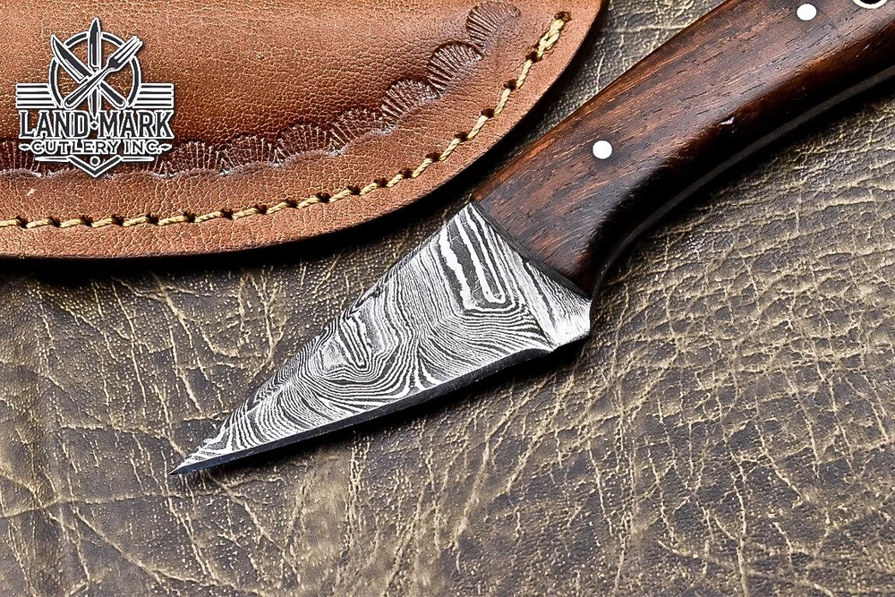Custom Hand Made DAMASCUS STEEL HUNTING KNIFE WITH ROSE WOOD HANDLE We offer a shipping discount for More then one purchased . And discount will be apply on combine invoice, Discount will not apply on separate payment. ITEM DETAILS OVER ALL LENGTH 3.0 inches long (Approx) HANDLE LENGTH 1.5 inches long (Approx) BLADE LENGTH 1.5 inches long (Approx) BLADE HARDNESS 58-60 HRC Which Holds The Sharp Edge For Long Time. HANDLE ROSE WOOD COVER LEATHER SHEATH This Awesome custom made KNIFE has a nice hand forged with the combination of 4340 & 1080 steel. HOW OUR DAMASCUS IS MADE: All our Damascus is real and not just an acid etch. Damascus is a mixture of 1080HC and 4340 nickel carbon. You heat them up together and then fold the bar over and over to get the desired layers, ours are 396 layers. Then you burn the blade in acid, and it turns the nickel satin color and the high carbon turns blackish gray. This is how the layers are exposed to show the layers of the new steel created coined "Damascus". All Damascus is acid etched to show the layers. If you high polish the metal it will be shinny satin like all steels. Only after you burn the sides of the blade with acid do you see the layers of the two steels. Makes sense? After we make our knives we high polish the handles and put an edge on the blade. The high polishing buffs off the acid burned layer of the handle, and the blade edge is sharpened and the acid burned edge becomes satin. You can re-burn the tang of the blade near the handles and the edge of the blade and it will show the layers once more. All our knives are hand made, durable and unique ***** YOU WILL RECEIVED THE SAME KNIFE Qality Standards Our Damascus blades are made from high quality non-stainless steels which rival or exceed any Damascus blade made from the 10 series with 4340. Our Damascus combination has taken years to perfect and has been tested under a variety of application which will offer professional performance in categories of toughness, strength (lateral stress) and edge honing and holding ability. In a 5 spot Rockwell test our blades will average near or close to 58 which offers a perfect balances between its toughness and strength.Our blades due to carbon content need to be regularly treated with wax and/or 3 in 1 oil to maintain its superior quality. Questions if you have any question feel free to send us message we aim to answer all questions within 24 hours Feedback If you are not satisfied with our service please contact us before leaving any negative or natural feedback. We will resolve all issues as quickly as possible. Disclaimer We are not responsible for any injuries associated with the use of our tools. Our products are intended for legal use only by responsible buyers. Therefore, we will not sell our products to anyone under the age of 18. Before bidding please check your country laws as some countries Custom don't allow this. If your purchase is held by Custom Authorities in your country/State we will not be responsible for that and no refund will be issued Shipping We offer a 20% shipping discount for More then one purchased . And discount will be apply on combine invoice, Discount will not apply on separate payment We ship within 24 hours after receiving complete payment but this can be delayed due to week ends or Governments and Religious Festivals . . This is beyond our control and we apologize for this inconvenience. Precautions Our Tools are very sharp so open and use them very carefully We are not responsible for any injuries associated with the use of our tools Tips to Care knife 1. NEVER STORE YOUR KNIFE FOR LONG TIME IN LEATHER SHEATH. 2. LEATHER CAN ABSORB WATER, WHICH WILL RUST THE KNIFE. 3. ALWAYS CLEAN THE BLADE AFTER USING WITH OIL OR WAX