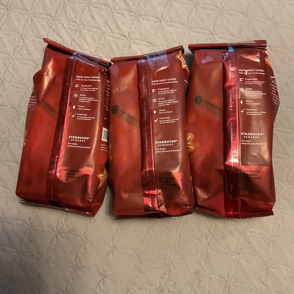 New. Getting 3 - 11 ounce bags of Starbucks gingerbread coffee. Best by date is 3/1/25. Limited edition ground. See pics. Ask any questions