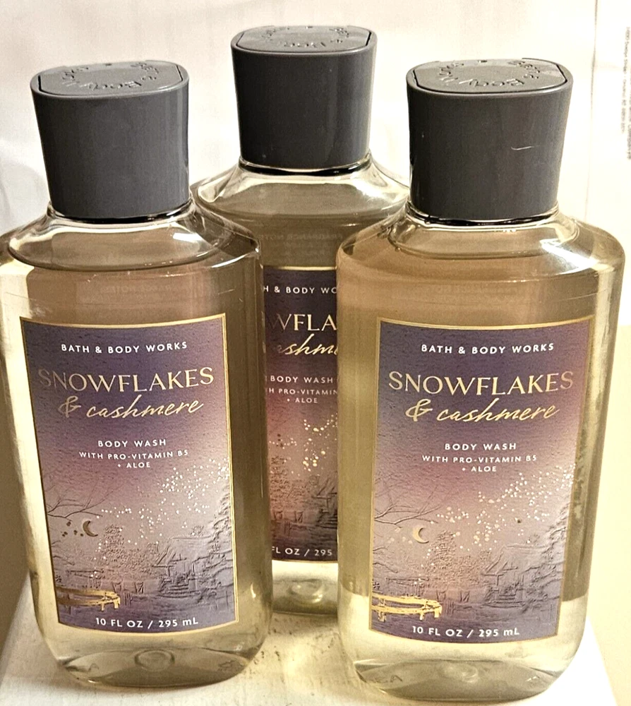 3 Bath & Body Works SNOWFLAKES & CASHMERE Scented Shower Gel Body Wash 10 oz