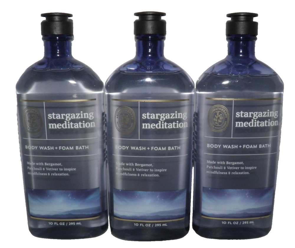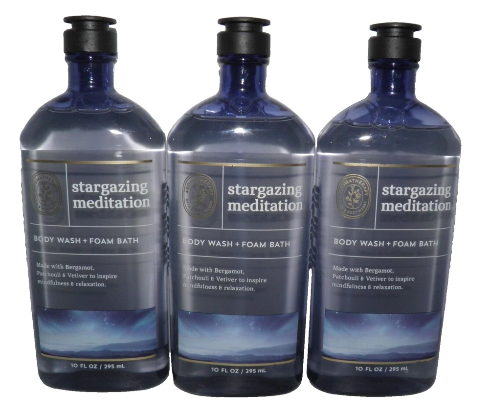 x3 Bath & Body Works Stargazing Meditation Body Wash Foam Bath Gel Aromatherapy 3 x 10 fl oz per order Mailing Address - We will ONLY ship to the address on file with eBay. Before making a purchase, please ensure that your address is correct. We may otherwise cancel the sale. Handling Time - Our handling time is set to THREE BUSINESS DAYS. We ship packages Monday - Friday, except on holidays. This listing is NOT sponsored by, affiliated with, or representative of the mentioned brand(s), trade name(s), or trademark(s) and does not claim any ownership of such. All trademarks or brands mentioned in this listing are registered trademarks of their original owners who reserve all their rights and ownership. The use or mention of any trade name, product name, or trademark is necessary for identification and is for reference purposes only.