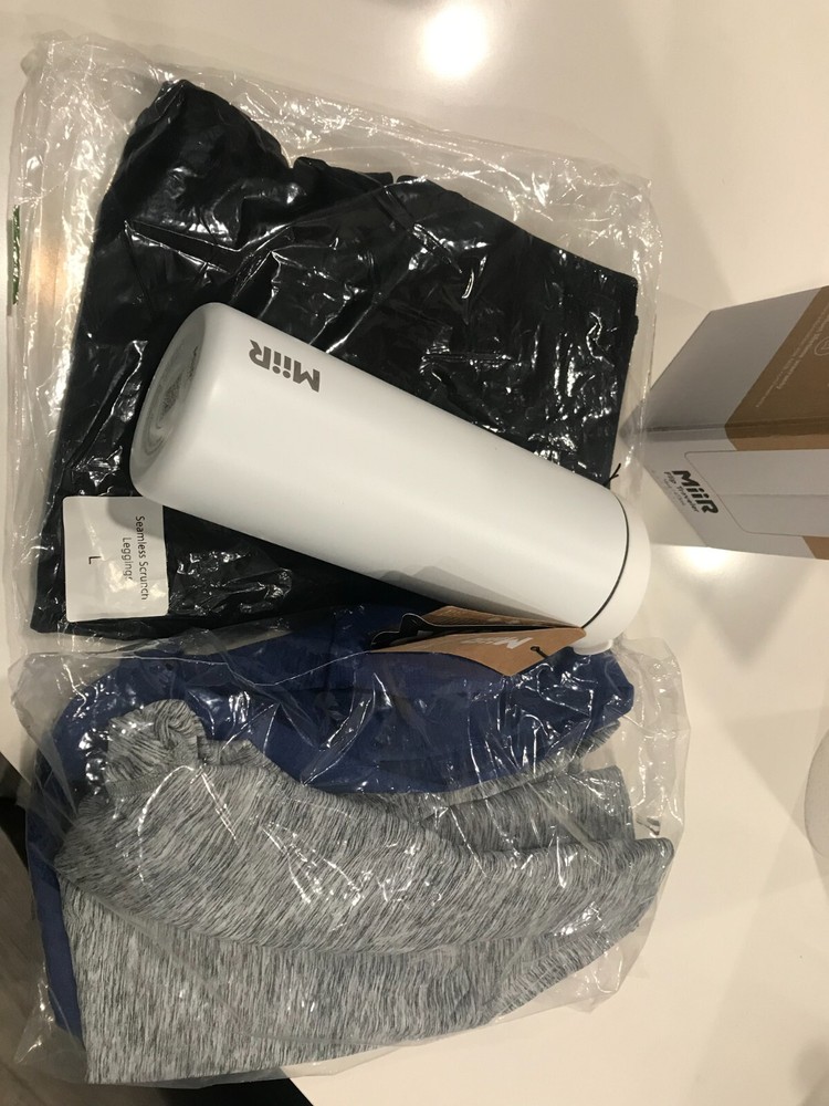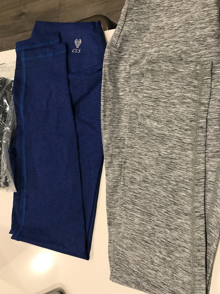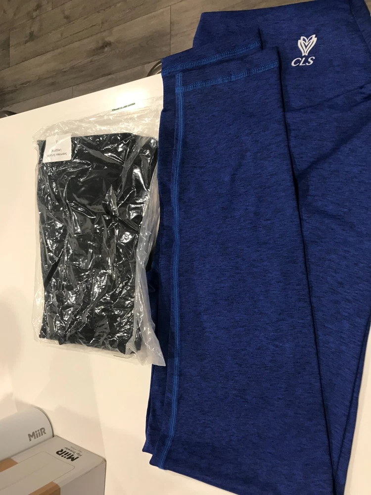 I have 3 CLS Women Sportwear Leggings. One of BLACK, ONE BLUE, ONE GREY! The black one is unopened, the blue and light grey are opened but never worn. They are all LARGE (L) Size and I am giving away a free new MiiR Travel waterbottle. All pictures have been included in the description.