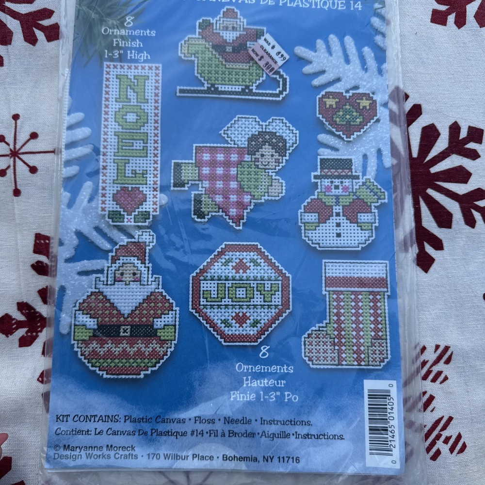 The Christmas Plastic Canvas Kit by Design Works includes 14 multicolor ornaments designed for hand embroidery on plastic canvas. Made in the USA, this kit comes with everything you need to create festive Christmas decorations. The blank pattern application allows for personalized customization, making it a fun and creative project for crafters and embroidery enthusiasts. Perfect for adding a homemade touch to your holiday decor, this kit is sure to bring joy and nostalgia to your Christmas season. Include 3 kits of plastic canvas # 1403 #1404 #1405