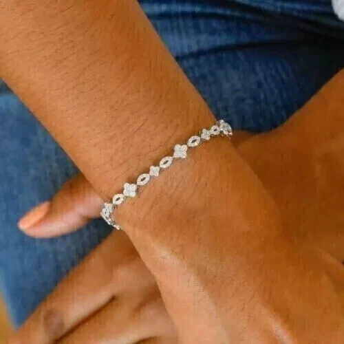 Style: Tennis Main Stone: Simulated Diamond Sizable: Yes Metal: Sterling Silver Personalize: Yes Main Stone Length: As per picture Handmade: Yes Country/Region of Manufacture: India Secondary Stone: Diamond Main Stone Color: White Shape: Round Theme: Beauty Features: Engraved Cut Grade: Excellent Type: Bracelet Occasion: Anniversary, Birthday, Christening, Christmas, Engagement, Graduation, Mother's Day, Valentine's Day, Wedding Country of Origin: India Number of Gemstones: As Per Picture Color: White Era: Undated Gemstone Clarity Grade: NA Seller Warranty: Yes Base Metal: Sterling Silver Setting Style: Prong Main Stone Width: As per picture Wholesale: Yes Antique: No Charm Type: Snap Closure: Spring Ring Item Length: As per picture Material: Stone, Metal Main Stone Creation: Simulated Main Stone Shape: Round Customized: Yes Vintage: No Main Stone Depth: As per picture Brand: karunas-76 Chain Type: Cable Metal Purity: 925 Signed: No Main Stone Treatment: Not Enhanced