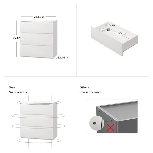 Return Policy Fast Delivery Trusted seller 3 Drawer Dresser, Wood Chest Drawers with Storage for Closet, Bedroom, Living Room and Hallway, Drawers Dresser Bedside Nightstand, White Product Description SUFFICIENT STORAGE: With a generous tabletop and three exceptionally deep drawers, this 3-drawer bedroom chest provides ample storage space for organizing sundries and accessories. Additionally, it adds a touch of glamour to your living space. STURDY STRUCTURE: Crafted from high-quality MDF wood and equipped with quality hardware, this contemporary 3-drawer dresser ensures exceptional strength and enduring durability. Each drawer has a capacity of up to 35 lbs. MODERN DESIGN: Designed with sleek lines and a minimalist flat-front style, this drawer chest seamlessly blends into any decorative theme. Its distinctive cut-out handles and elegant beveled base contribute to a contemporary, clutter-free aesthetic for your space. MULTI-FUNCTIONAL FURNITURE: Beyond serving as a storage dresser, this versatile piece can double as a tall nightstand beside your bed, a side end table in the living room, or easily complement other cabinets in the collection for a cohesive look. This 3 drawer dresser measures 23.62W 13.46D 25.12H inches. Shipping Returns Payment Shipping Shipping is FREE to all addresses other than APO/PO boxes in the lower 48 states. All our stock ships from US-based warehouses. Shipped via USPS or UPS (depending on location and package weight) Unless stated otherwise, all orders will ship within 24-72 hours of your payment being processed. Check our feedback to see the great reviews of FAST shipping we offer. Returns Seller does not accept returns Payment We currently accept payment via eBay managed payments only. Once payment is cleared, we will dispatch your shipment within 1-3 business days. Please refer to the "Shipping" tab for more information regarding shipping speed to your destination.