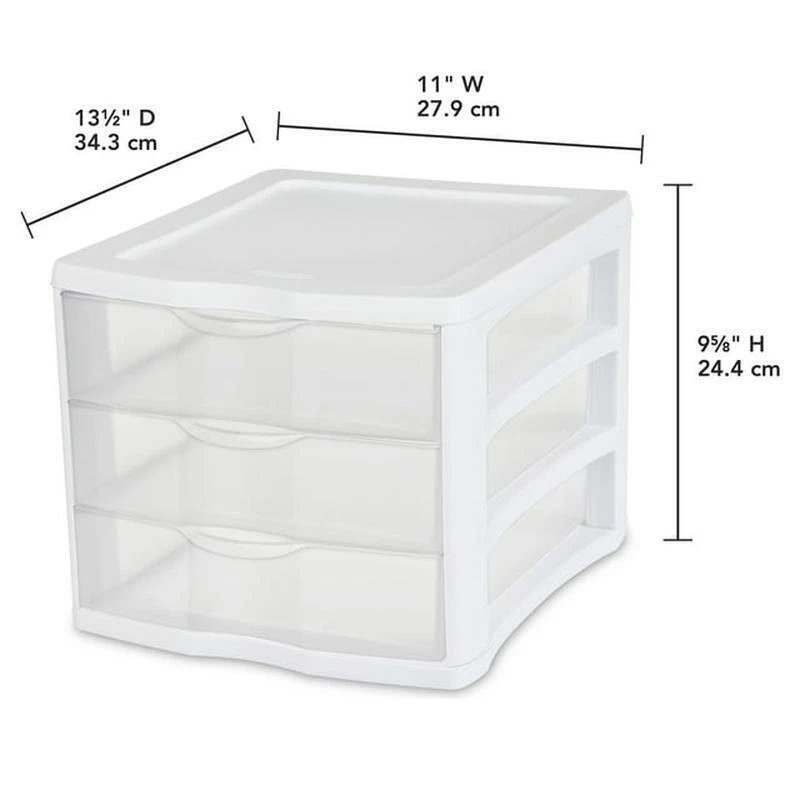 You may also like 6 in Non-Stick Fluted Tube Pan Baking Mold Easy Release Durable Kitchen Tool New 10.83 USD 11.4 USD Free shipping 5% off Heavy Duty Carport Canopy Extra Large Portable Car Tent Garage W/Roll-Up Windows 312.71 USD 329.17 USD Free shipping 5% off Commercial Lightweight Backpack Baggged Vacuum Cleaner for Carpet & Hard Floors 400.84 USD 421.94 USD Free shipping 5% off Professional Compact 120V Bench Grinder Sharpenern Garage All Chainsaw Chains 268.03 USD 282.14 USD Free shipping 5% off Folding Luggage Cart Transport Moving Cart Hand Truck, Black, 75lbs Capacity 31.41 USD 33.06 USD Free shipping 5% off Bread Box Steel Fingerprint Proof 21 X 11 X 8 In Handy Large Capacity Durable 73.86 USD 77.75 USD Free shipping 5% off Grind Rail 55 In Long 3 Step Adjustable Height Extra Stability Practice Skate 69.49 USD 73.15 USD Free shipping 5% off Strong Suction Stick Vacuum Cleaner Lightweight Corded Hardfloor Adjustable Tube 49.28 USD 51.87 USD Free shipping 5% off 6 Piece Plastic 192 In Super Wide Baby Gate Play Yard 2 In 1 Ages 6 24 Months 75.8 USD 79.79 USD Free shipping 5% off Ultra Light Flexible Quarter Inch 100 Ft Air Hose Perfect Roofers Contractors 46.6 USD 49.05 USD Free shipping 5% off 12V UltraSafe Portable Lithium Jump Starter Car Battery Booster Pack Powerbank 411.19 USD 432.83 USD Free shipping 5% off 3-Burner Gas Stove for Big Outdoor Cooking 30000 BTU 608 Sq in Cooking Space Red 426.42 USD 448.86 USD Free shipping 5% off Control everyday clutter and keep desks, countertops, and shelves clear and organized with Sterilite Countertop Drawers! These multi-purpose storage solutions can be used in any room of the home, for crafts, office supplies, jewelry, first aid supplies, beauty items, and more. The 3 Drawer Unit features three clear drawers that neatly contain items but still allow contents to be easily identified. The drawers conveniently hold 8 1/2" x 11" paper. Ideal for keeping smaller items sorted and stored for easy access where they are used most often. The classic styling complements any decor. Multiple units can stack on top of each other to create customized storage solution. Outside Dimensions: 13 1/2" x 11" x 9 5/8" Interior Dimensions at bottom of drawer: 12" x 8 7/8" x 2 1/2" Multi-purpose and versatile storage option for any room of the home Clear drawers allow viewing of contents and accommodate a standard ream of 8 1/2" x 11" paper Units are stackable to create a multi-unit system Drawer stops prevent drawers from being removed accidentally Non-Stick Round Cake Pan 9 In Durable Steel Ergonomic Handles Even Heating New 11.15 USD 11.74 USD Free shipping 5% off Stainless Steel Sink Strainer Basket Durable Easy Install Anti-Clogging Solution 19.25 USD 20.26 USD Free shipping 5% off 37-Piece Screwdriver Bit Set Magnetic Holder Storage Case DIY & Professional Use 12.93 USD 13.61 USD Free shipping 5% off Locking Plier Set Long Nose Curved Jaw Adjustable Quick Release Durable Tool New 11.85 USD 12.47 USD Free shipping 5% off Natural Hardwood Lump Charcoal 15lbs High Heat Long Burn Low Ash Grilling New 20.94 USD 22.04 USD Free shipping 5% off Ultralight Water Filter Removes Bacteria Parasites Microplastics Travel Ready US 14.68 USD 25.72 USD Free shipping 43% off Nitrile Disposable Gloves Powder Free 100 Ct Puncture Resistant Latex Free New 20.94 USD 22.04 USD Free shipping 5% off 13 Gallon Plastic Swing Top Trash Can Ideal Kitchen Bathroom Garage Office New 18.09 USD 19.04 USD Free shipping 5% off Heavy Duty Aluminum Foil 18 Inch BBQ Grill Cooking Prep Wrap 37.5 Sq Ft Favour 11.16 USD 11.75 USD Free shipping 5% off Plastic Desktop Caddy Organizer W/Drawer & Compartments Office Supplies Home New 8.23 USD 8.66 USD Free shipping 5% off Wall Mount Toilet Paper Holder W/ Shelf Steel Bronze Durable Bathroom Accessory 16.44 USD 17.3 USD Free shipping 5% off Stackable Toilet Paper Storage Bin W/ Lid Modular Organizer BPA-Free Plastic New 25.17 USD 26.49 USD Free shipping 5% off